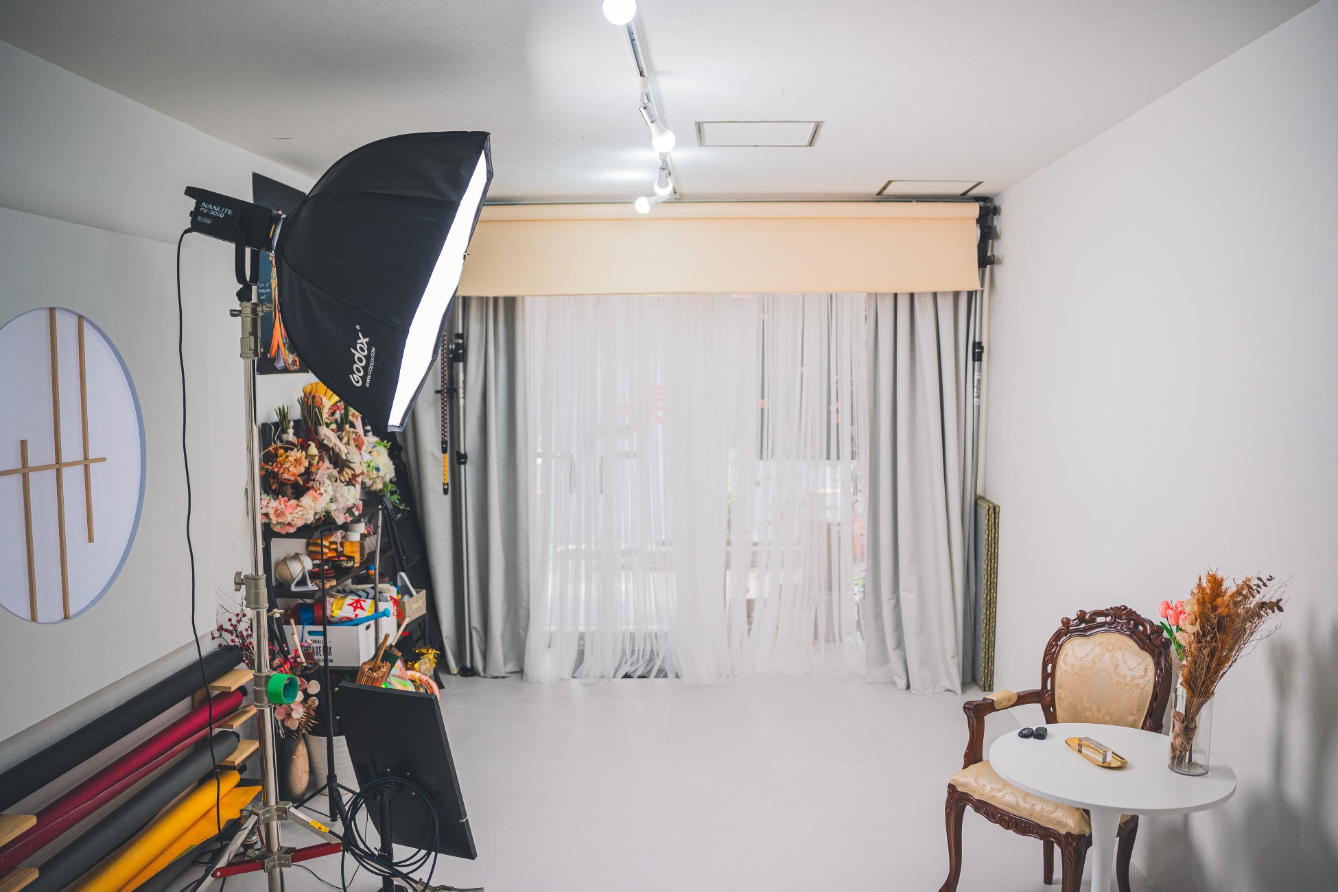 プロ仕様の照明・背景を自由に使えるスタジオ空間