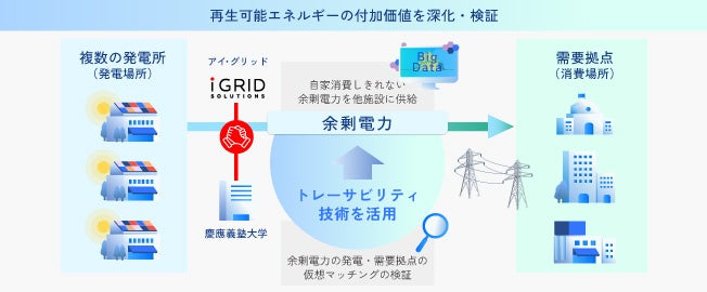 株式会社アイ・グリッド・ソリューションズ(本社:東京都千代田区、代表取締役社長:秋田 智一、以下「アイ・グリッド」)と慶應義塾大学 未来光ネットワークオープン研究センター (研究センター:川崎市幸区、センター長 特任教授:山中 直明、以下「慶應義塾大学」)は、複数の発電所で生み出される余剰電力にリアルタイムの発電場所、消費場所、量のトレーサビリティ技術を活用して新たなサービスを創出するための共同研究を行うことをお知らせいたします。