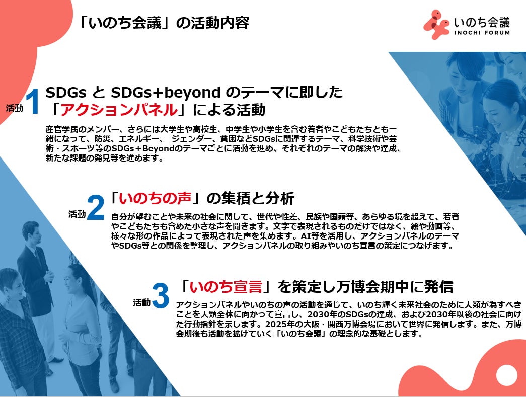 いのち会議は、2030年のSDGsゴール年を超えて、2050年、さらにはそれ以降を展望する遠大な取り組みです。