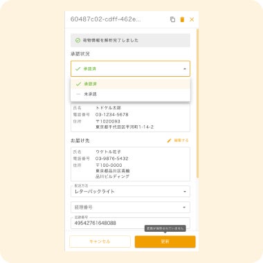 AIによる自動解析により、手書き伝票を含む発送控えを簡単にデータ化・一元管理します。