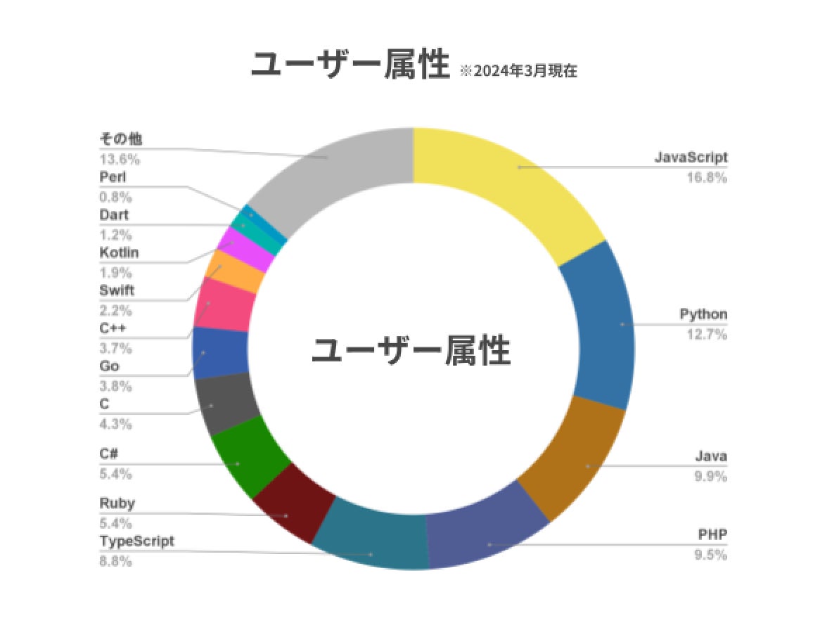 ・Python、TypeScript、Ruby、Goをはじめとしたモダンな言語を活用するエンジニアの割合が高い