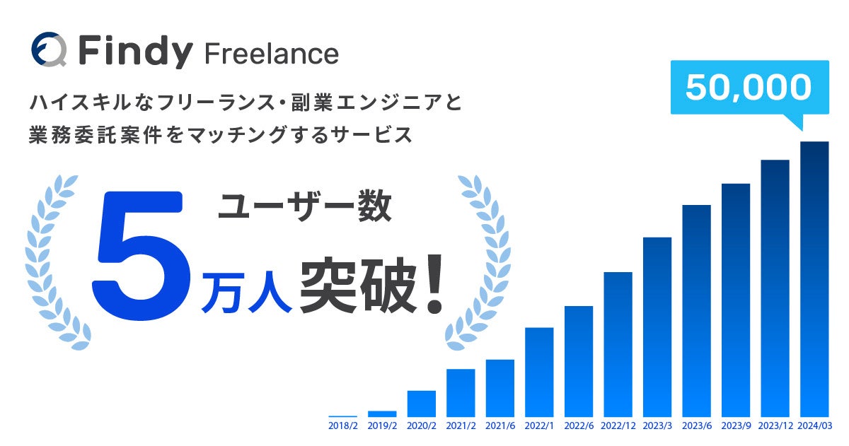 ハイスキルなフリーランスエンジニア紹介サービス「Findy Freelance」登録ユーザー5万人突破!