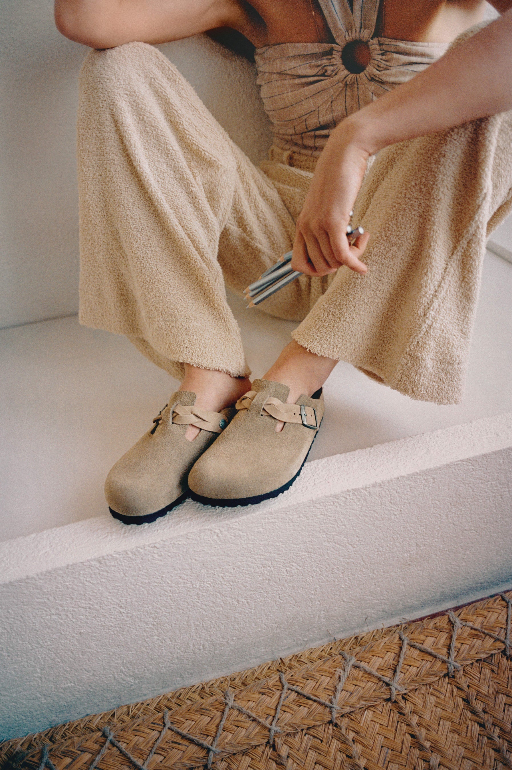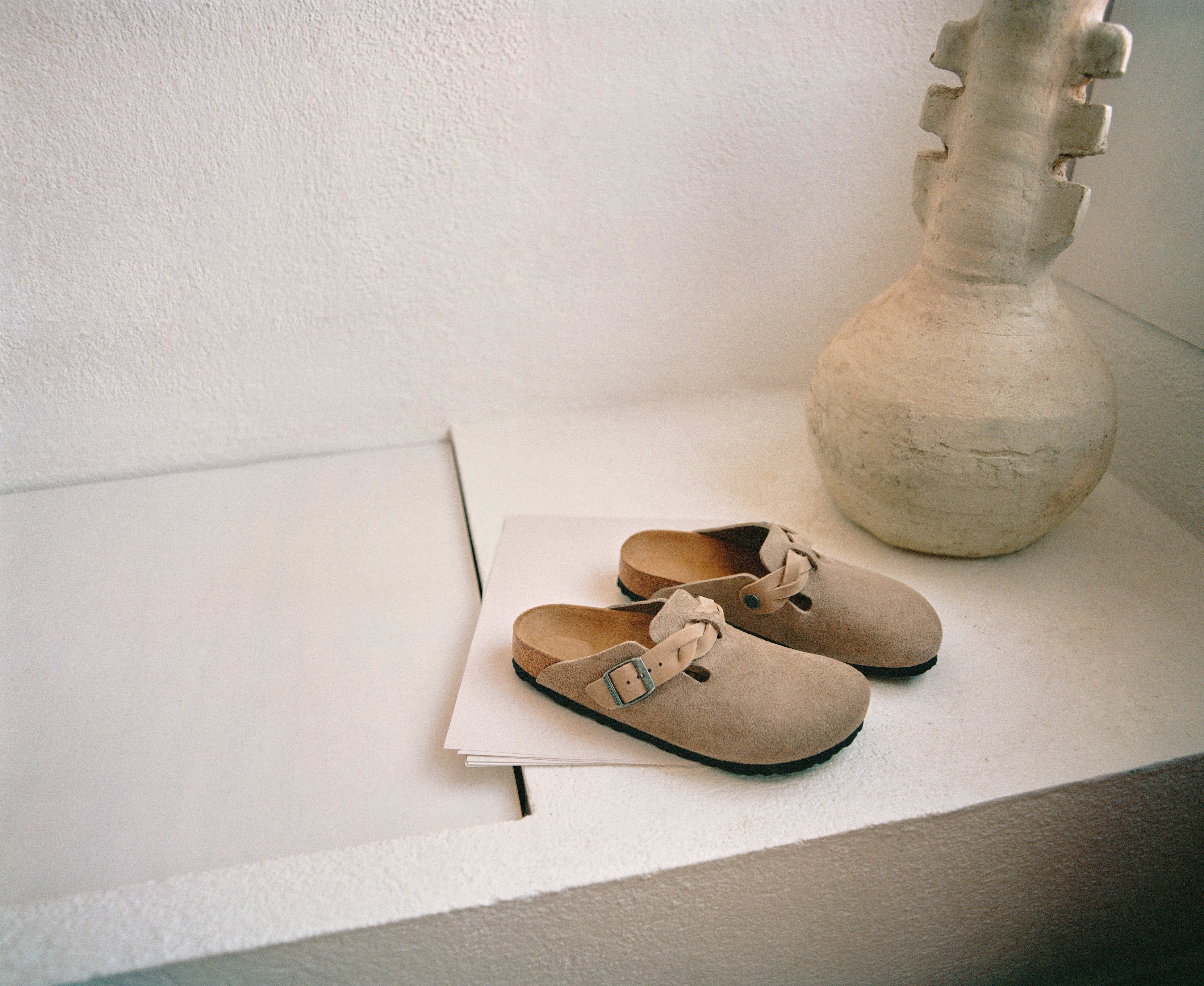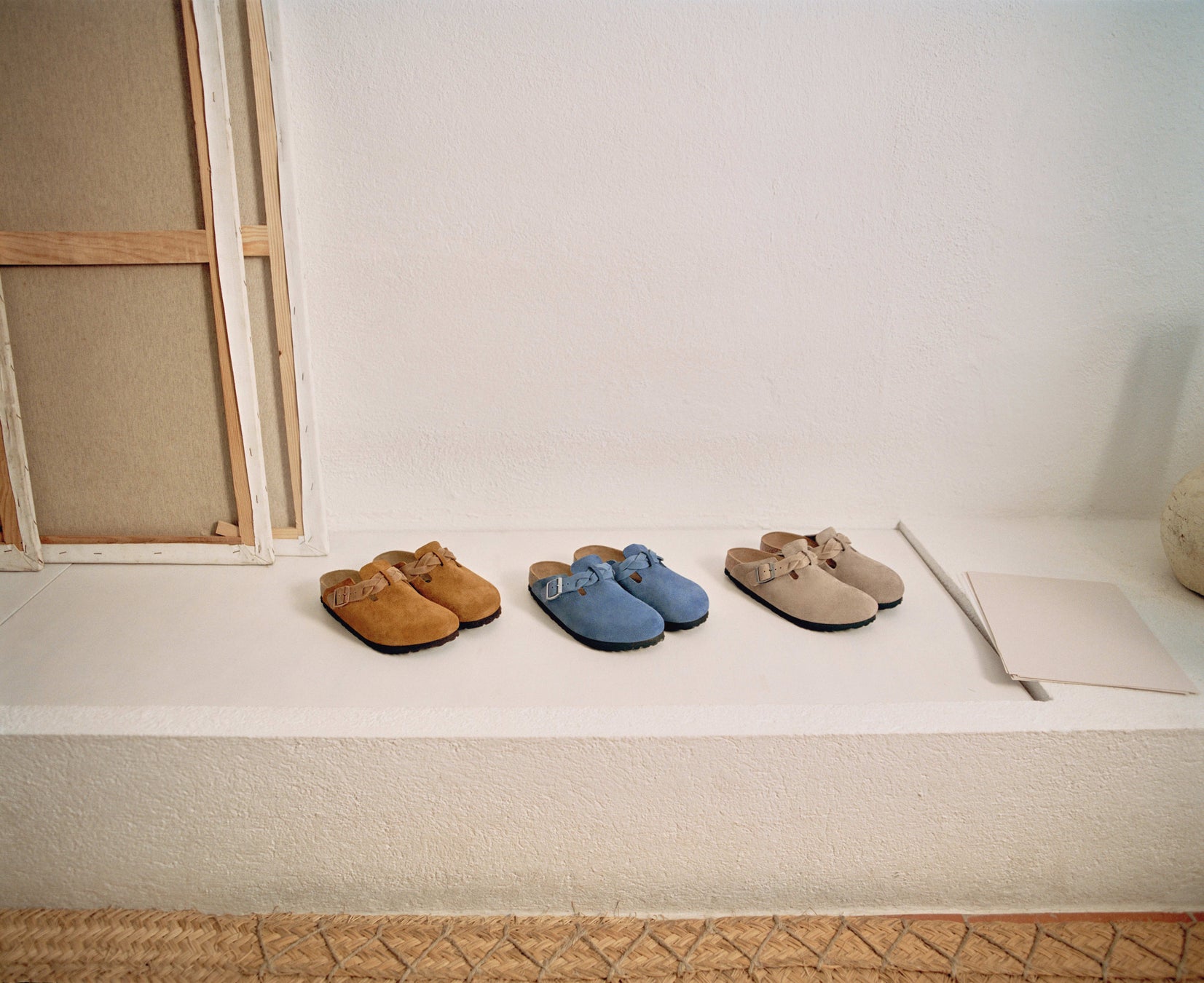 このブレイデッドは、BOSTON(ボストン)、OITA(オオイタ)というアイコニックな二つの人気モデルに、一つ一つ手編みで編まれたオイルドレザーのストラップが加わり、モダンな表情へとアップデートされたシリーズです。いずれもエフォートレスな雰囲気を湛えるニュアンスの効いたスウェードレザーのアッパーに、クラフトマンシップを感じさせるブレイデッドストラップが絶妙なバランスで配され、トーナルにまとめられています。ブランドを代表するクロッグのボストンは一層エレガントに、ワンストラップのサンダルMADRID(マドリッド)からインスパイアされた新たな定番のOITAは、よりリラックス感のあるルックで春夏の足元を彩ります。
