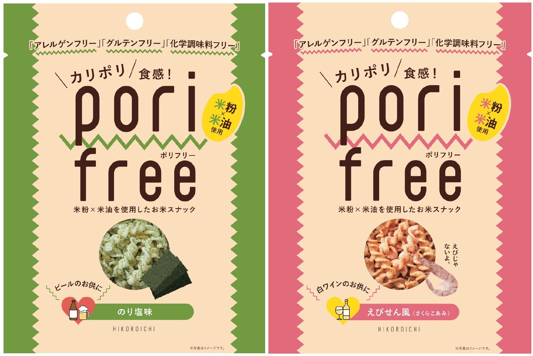 ほぼエビ?海苔が香る!3つのフリーで罪悪感なく食べられるお米のスナック菓子「ポリフリー」から2つの味が3月27日に新発売。