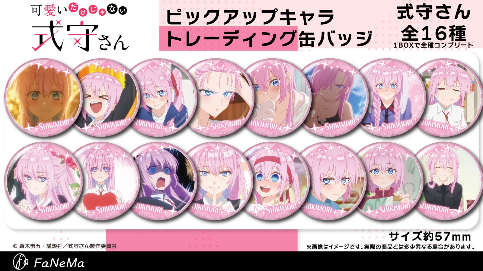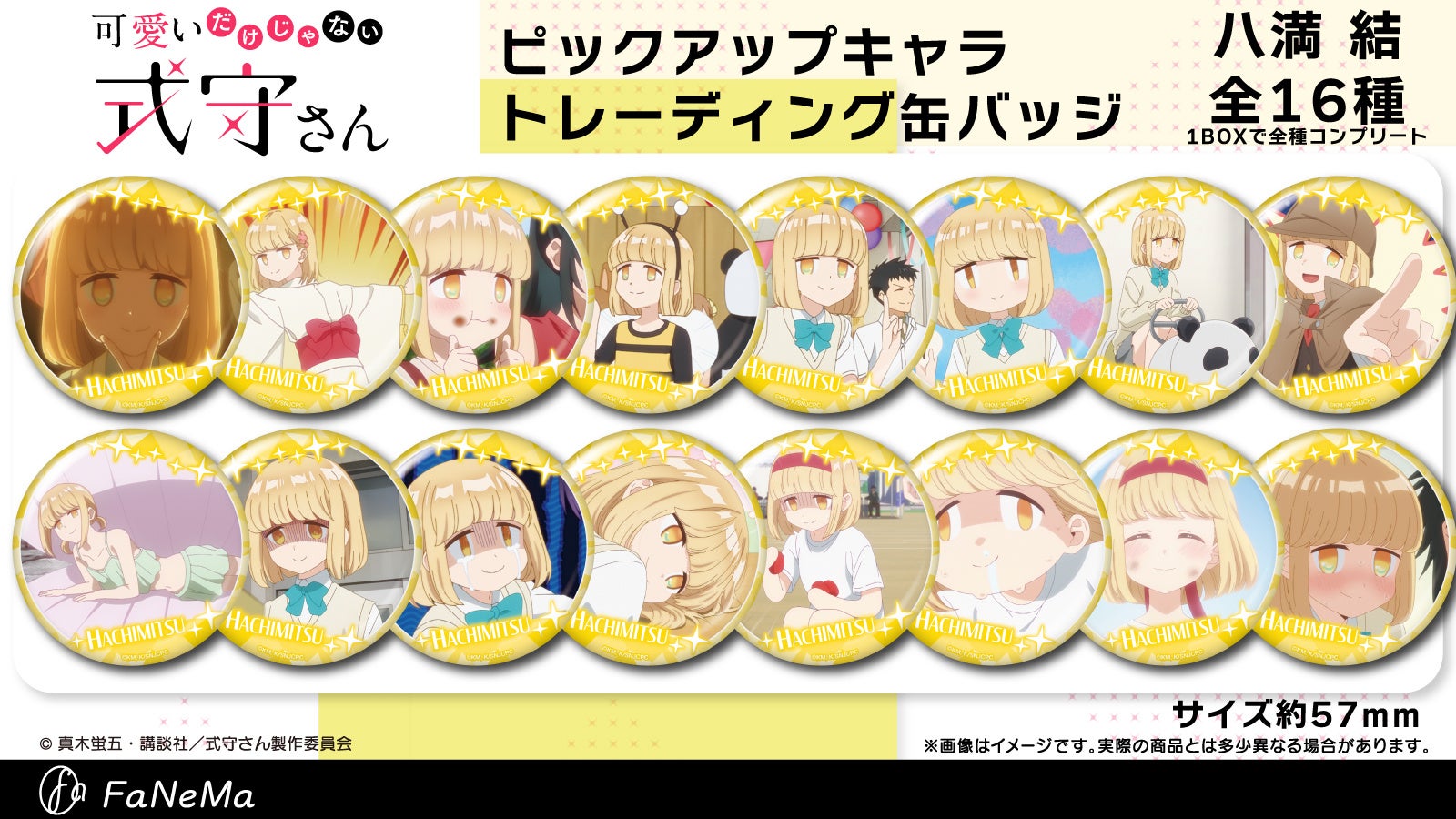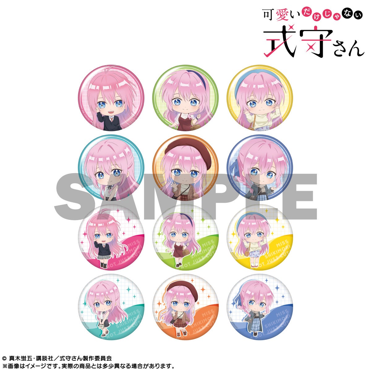 四季折々の式守さんをイメージした新規描き起こしのデフォルメイラストの「トレーディングBIG缶バッジ」が登場!