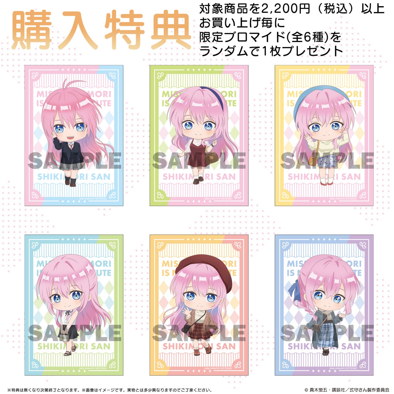 TVアニメ『可愛いだけじゃない式守さん』対象商品を2,200円(税込)以上お買い上げ毎に「FaNeMa限定ブロマイド」(全6種)をランダムで1枚お付けいたします。