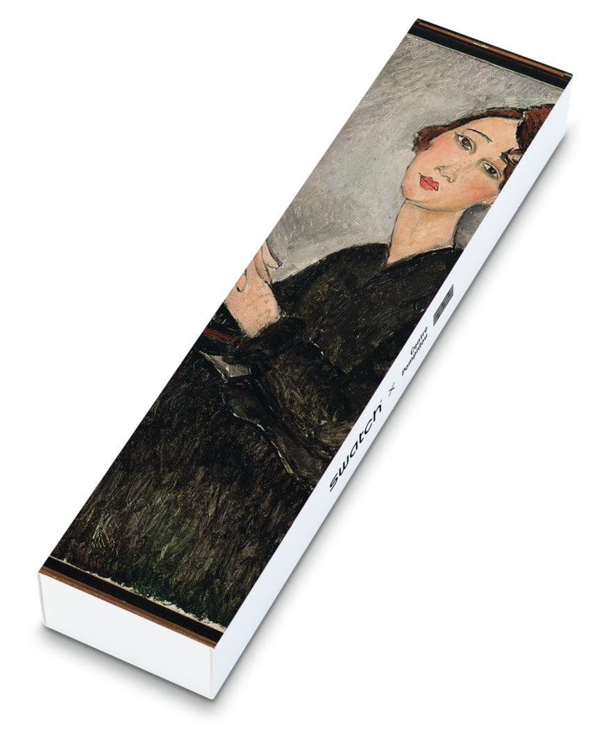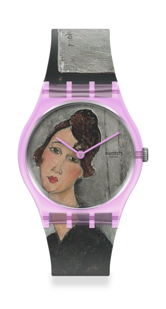 PORTRAIT OF DEDIE, BY AMEDEO MODIGLIANI, THE WATCHは、20世紀初頭のパリの雰囲気をアイコニックな肖像画で見事にとらえたイタリアの画家モディリアーニへのオマージュ。Gentストラップには画家本人のサイン。メタリック仕上げの文字盤で、ケース、バックル、ループ、針にはソリッドなピンクがはじける魅力的なスウォッチ タイムピースです。