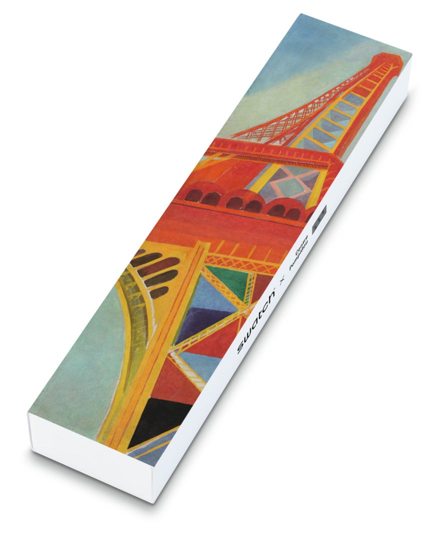 EIFFEL TOWER, BY ROBERT DELAUNAY, THE WATCHは、パリのシンボル、栄光に満ちたエッフェル塔を独特のアングルから描くロベール・ドローネーの名作をよみがえらせました。Gentウォッチのバランスはドローネーの原作に忠実である一方で、文字盤、ストラップ、針は鮮やかなレッド、イエロー、オレンジ、ブルーが特徴です。