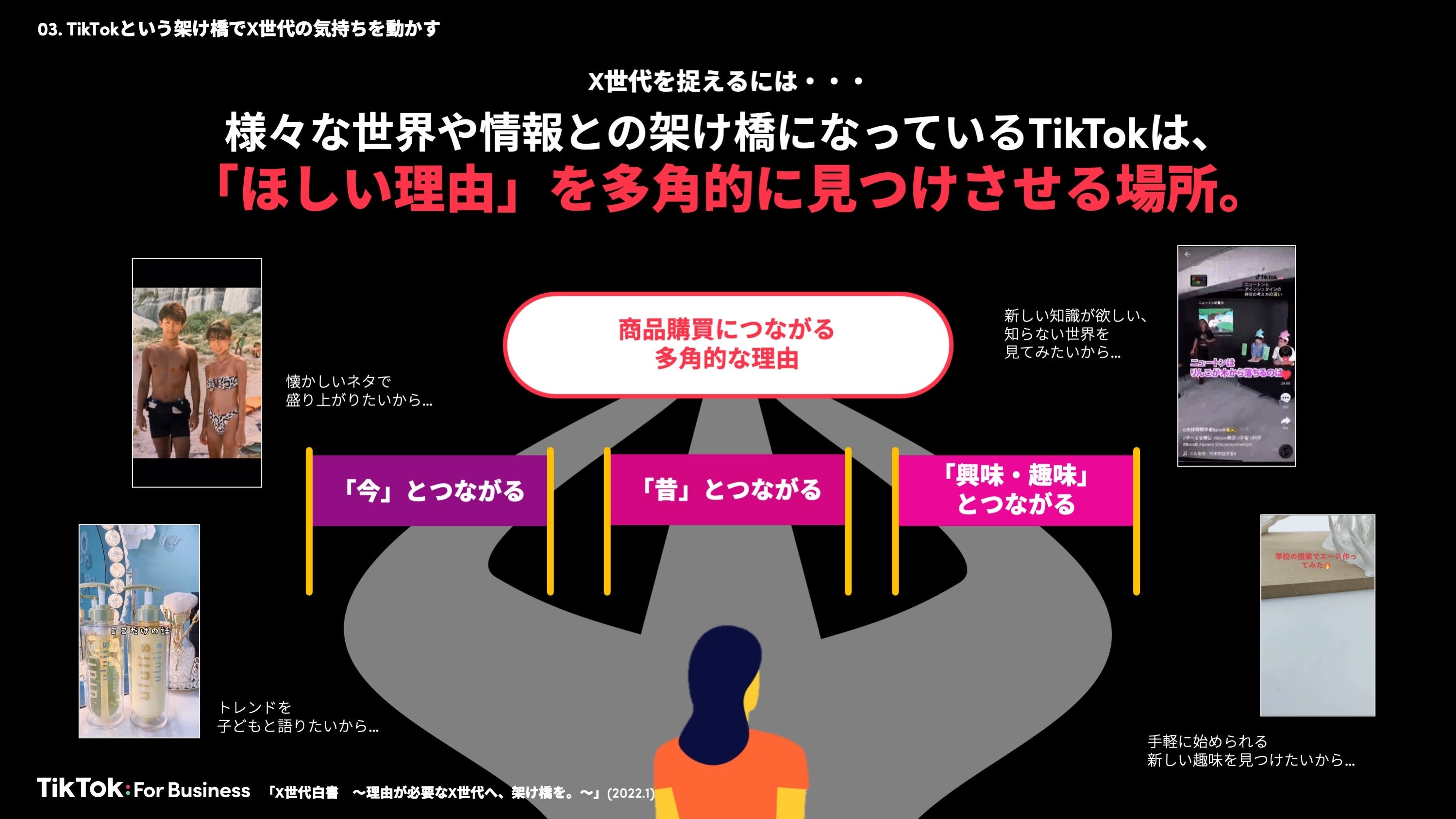 そして、様々な世界や情報との架け橋になっているTikTokは、X世代にとって、その「理由」が見つかる場所となっています。