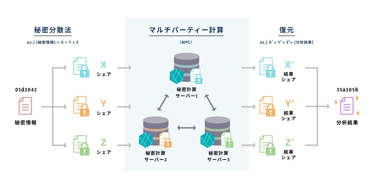 ※1 マルチパーティー計算(MPC:Multi-party computation):複数体がそれぞれの秘密のデータを共有することなく、共同で計算を行い、その結果だけを共有するための暗号技術です。この技術は、プライバシーとセキュリティを保ちながら、データの共同利用や分析を可能にします。