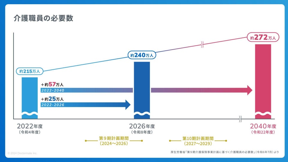 介護事業所向けに医療ソリューションを提供するドクターメイト株式会社(代表取締役・医師 青柳 直樹)は、株式会社タイミー(代表取締役 小川 嶺)と2024年9月より、厚生労働省から介護事業所が義務づけられている法定研修の内容を基にした、タイミーの働き手に向けた基礎研修を実施する共同実証運用を開始したことをお知らせします。