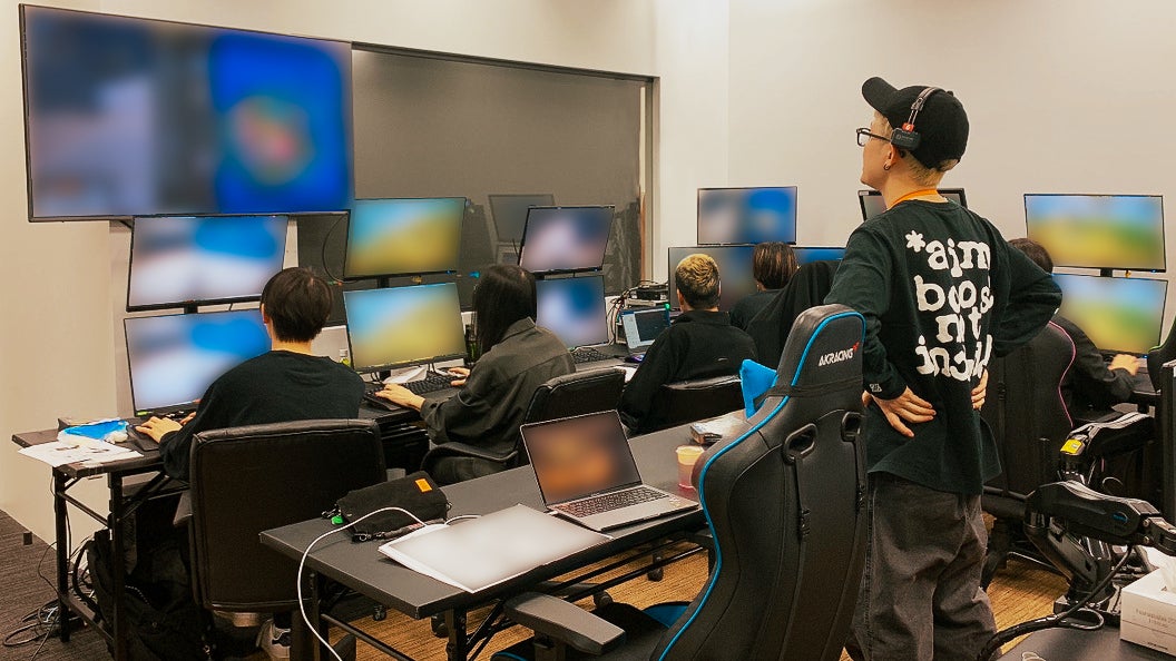 オブザーバー自身のカメラ操作画面用モニターに加えて、スクリーンや配信に映し出されている映像、他のオブザーバーたちが映している映像をリアルタイムでモニタリングできるデュアルモニター環境を完備。タイトルや要件に応じて、オブザーバーが最高のパフォーマンスを発揮できるよう設計されています。