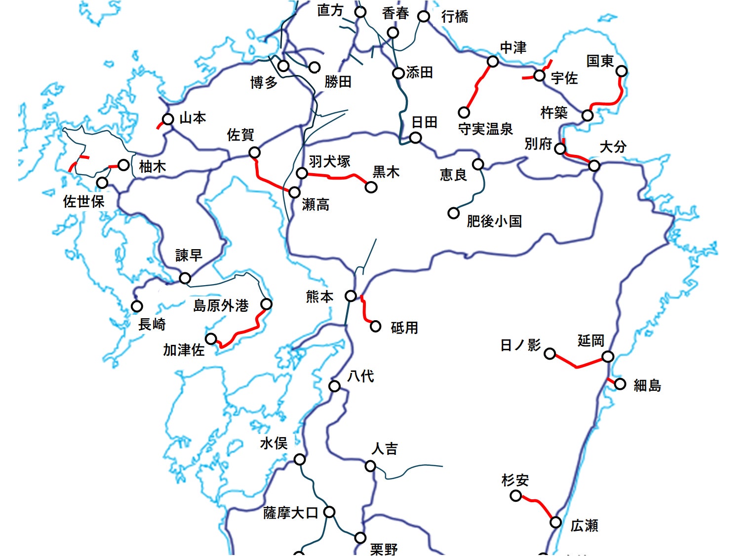島原鉄道(島原外港-加津佐 間)、熊延鉄道、大分交通鉄道線(掲載:4路線)