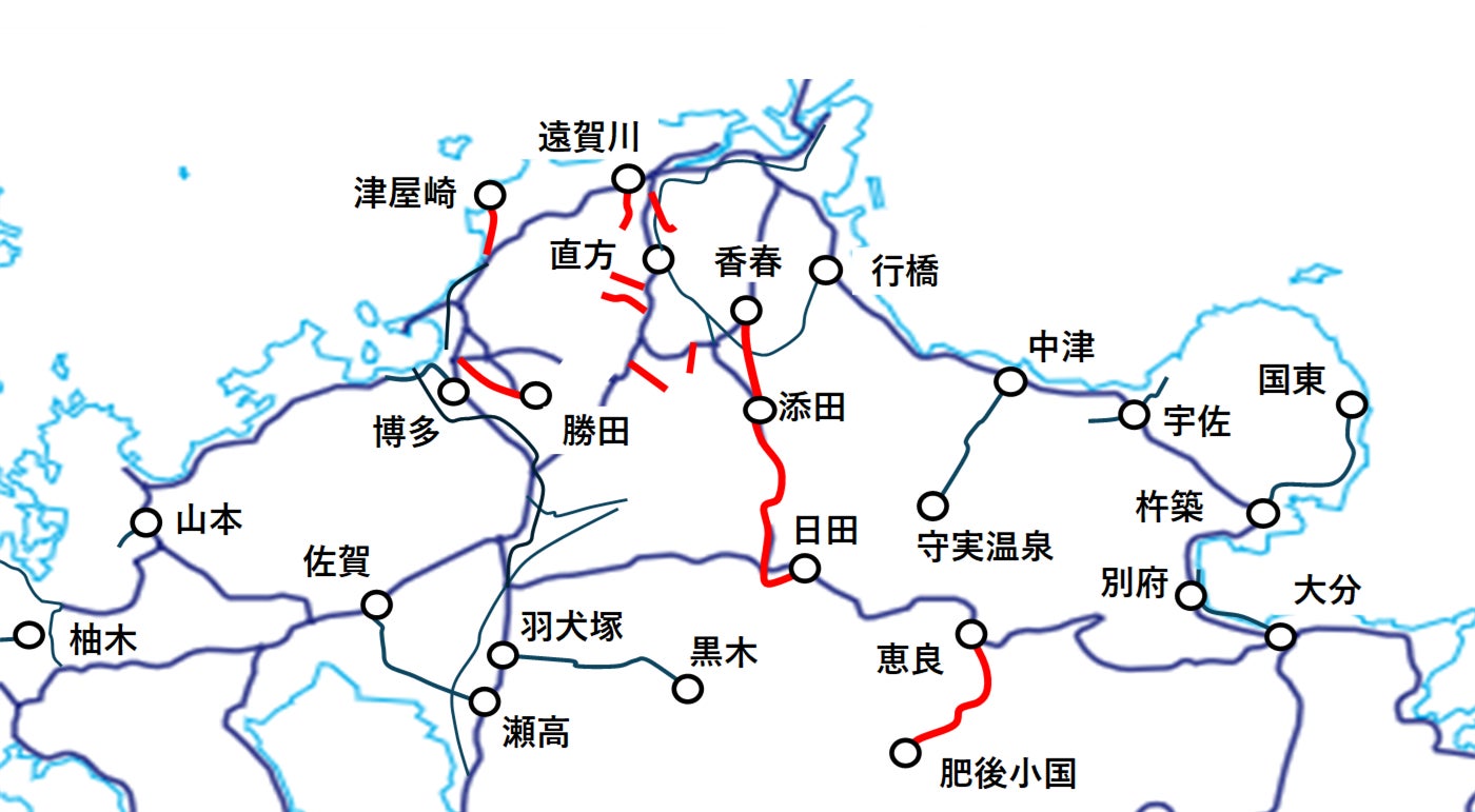 №1 筑豊・糟屋炭鉱線(掲載:9路線)、日田彦山線、宮地岳線(西日本鉄道)