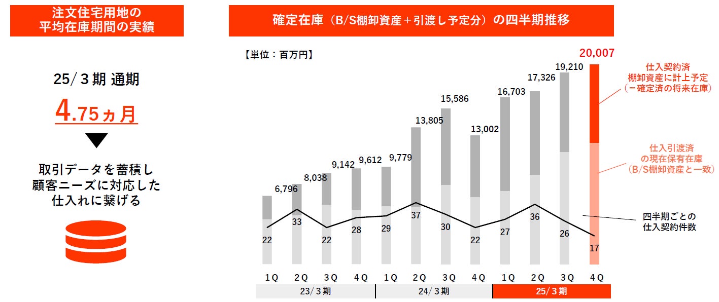 21/3期のコロナ、23/3期~24/3期には不動産価格の上昇や建築資材コストアップなど厳しい局面もありましたが、利益も順調に成長し、販売在庫も積み上がっております。
