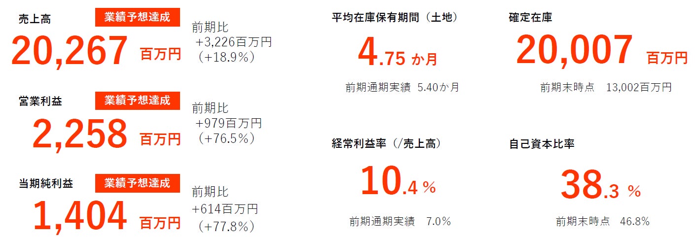 建築会社マッチングの好調な成約状況、収益用不動産の早期販売完了などから、在庫回転や利益水準が改善。