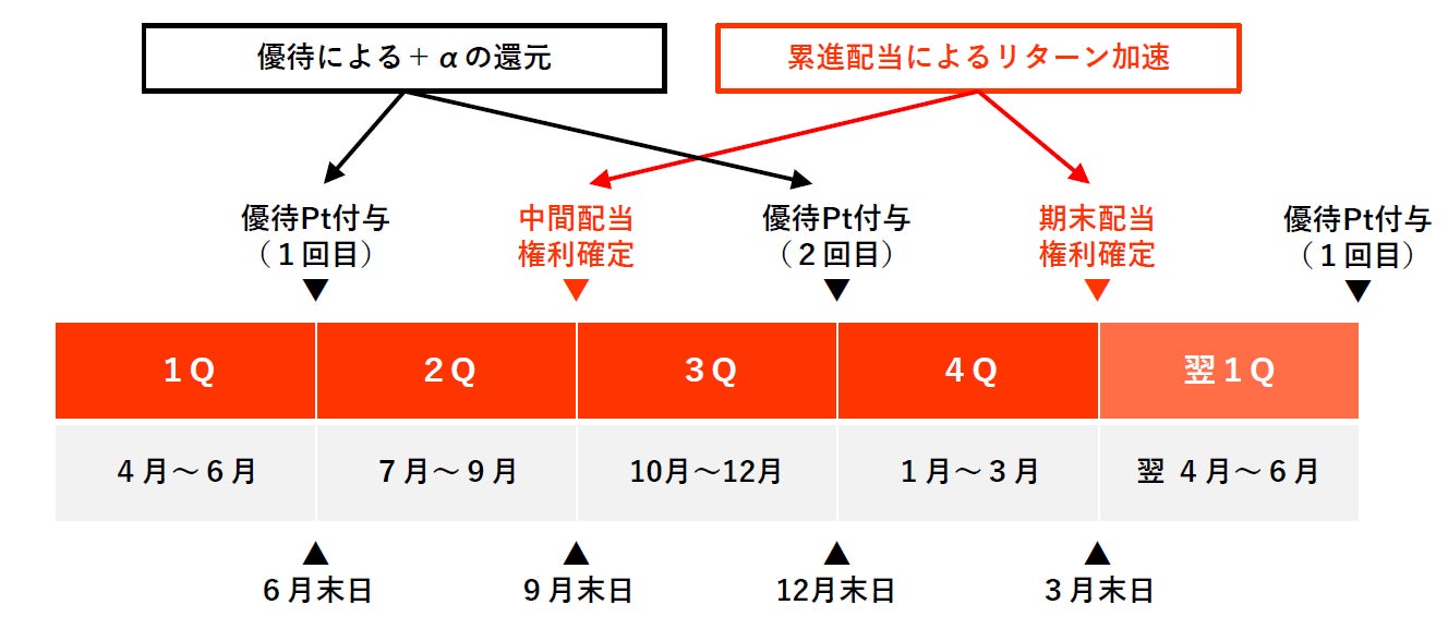※中間配当同様、株式分割により不利益はありませんが、分割後はポイント進呈テーブルに変更がありますので、詳細は適時開示をご覧ください。