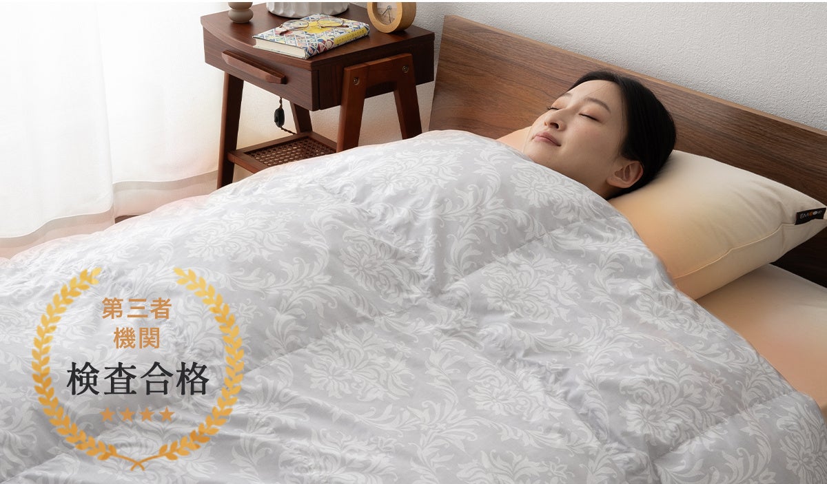 羽毛と特殊わたをブレンドしたハイブリット掛け布団
