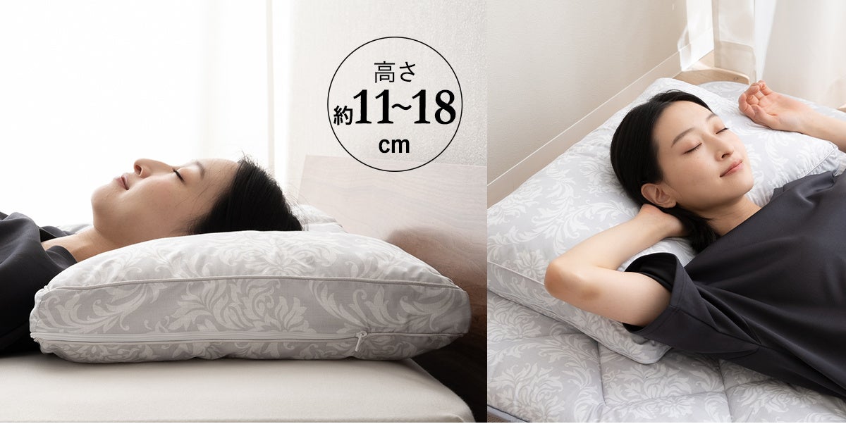 高さは約11cm~18cmほどに調節可能。重さは約2.1kgでしっかりと重量があるため枕がズレる心配もありません。