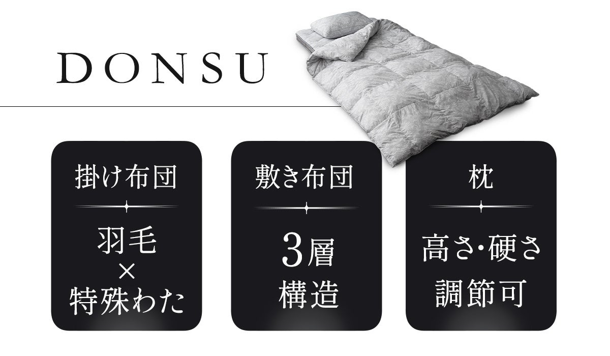 昭和レトロな美しさと、最新技術を駆使した快適な寝心地の高機能布団3点セット『DONSU』が新登場!来客用や宿泊施設でも使いやすい耐久性とカスタマイズ機能を搭載!