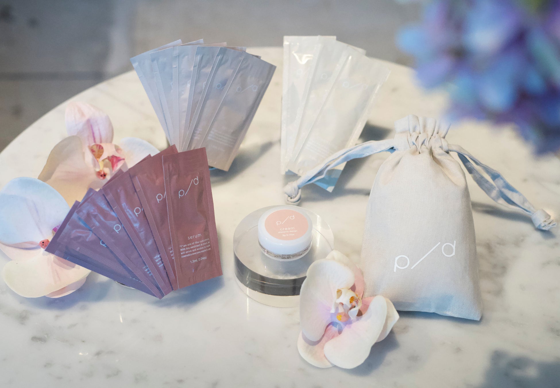 p/d の効果をご実感いただける、おすすめ4種『p/d トライアルキット』(サンプル3日分) に、p/d オリジナルミニ巾着付き!