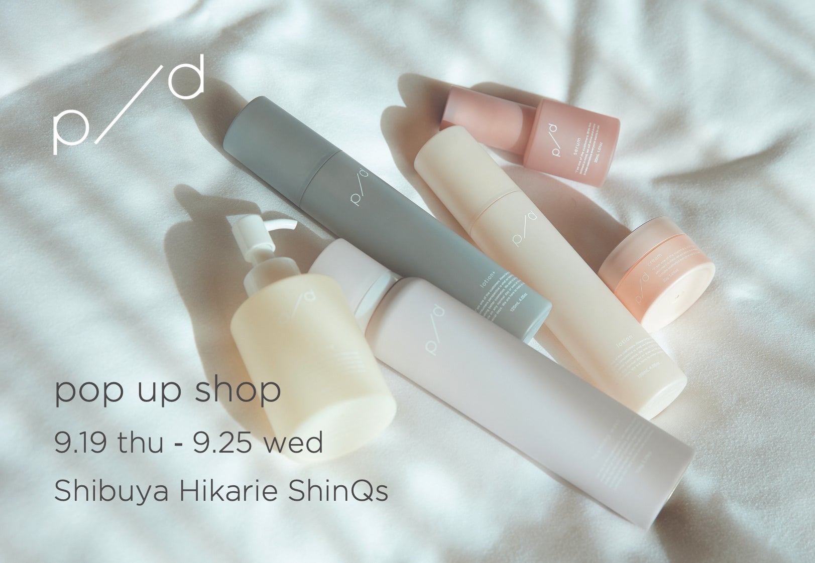 株式会社PDS Life (東京都港区 Plan・Do・Seeグループ) が運営する、“花嫁の肌” にインスパイアされて誕生したスキンケアブランド「p/d (ピーディー)」は、2024年9月19日 (木) 〜 9月25日 (水) 渋谷ヒカリエShinQs 1F 特設スペースにて、期間限定のポップアップショップを開催いたします。
