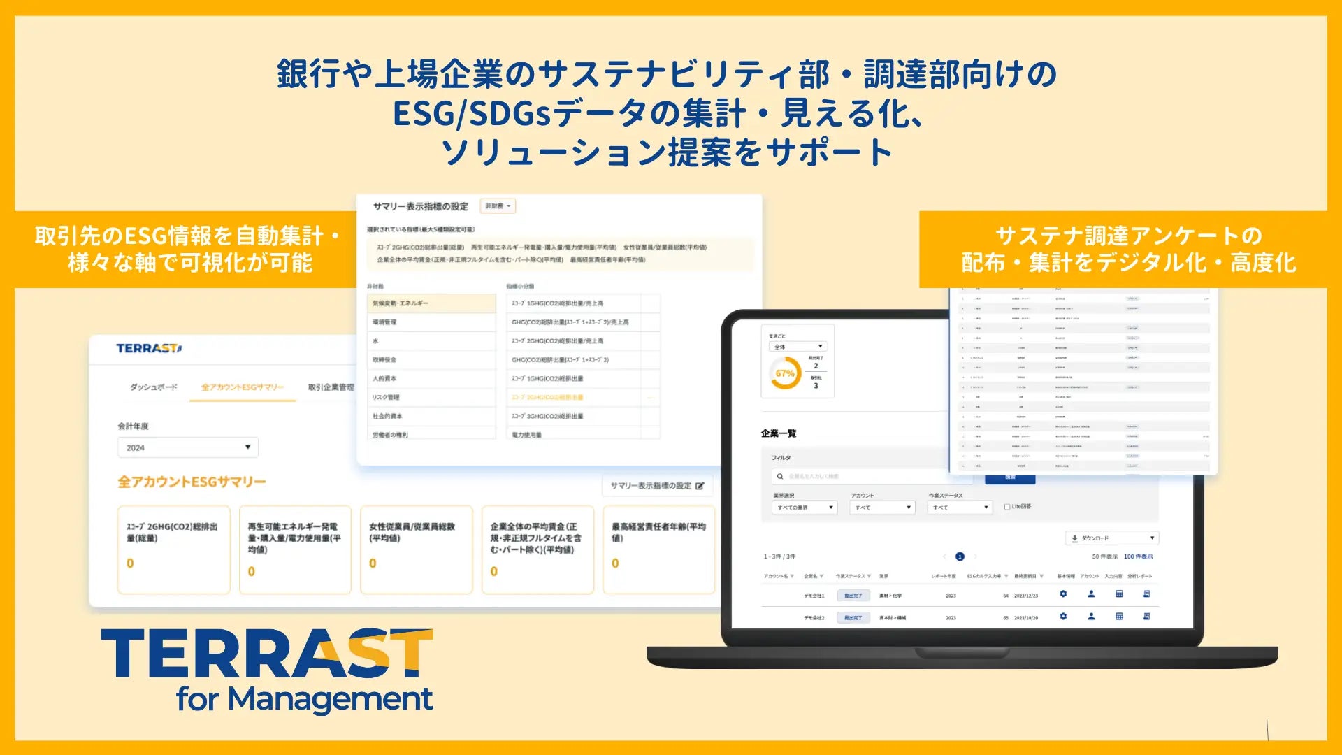 調達部・連結開示向けのESGデータ集計・見える化をサポートする「TERRAST for Management」