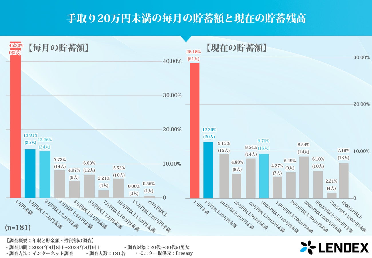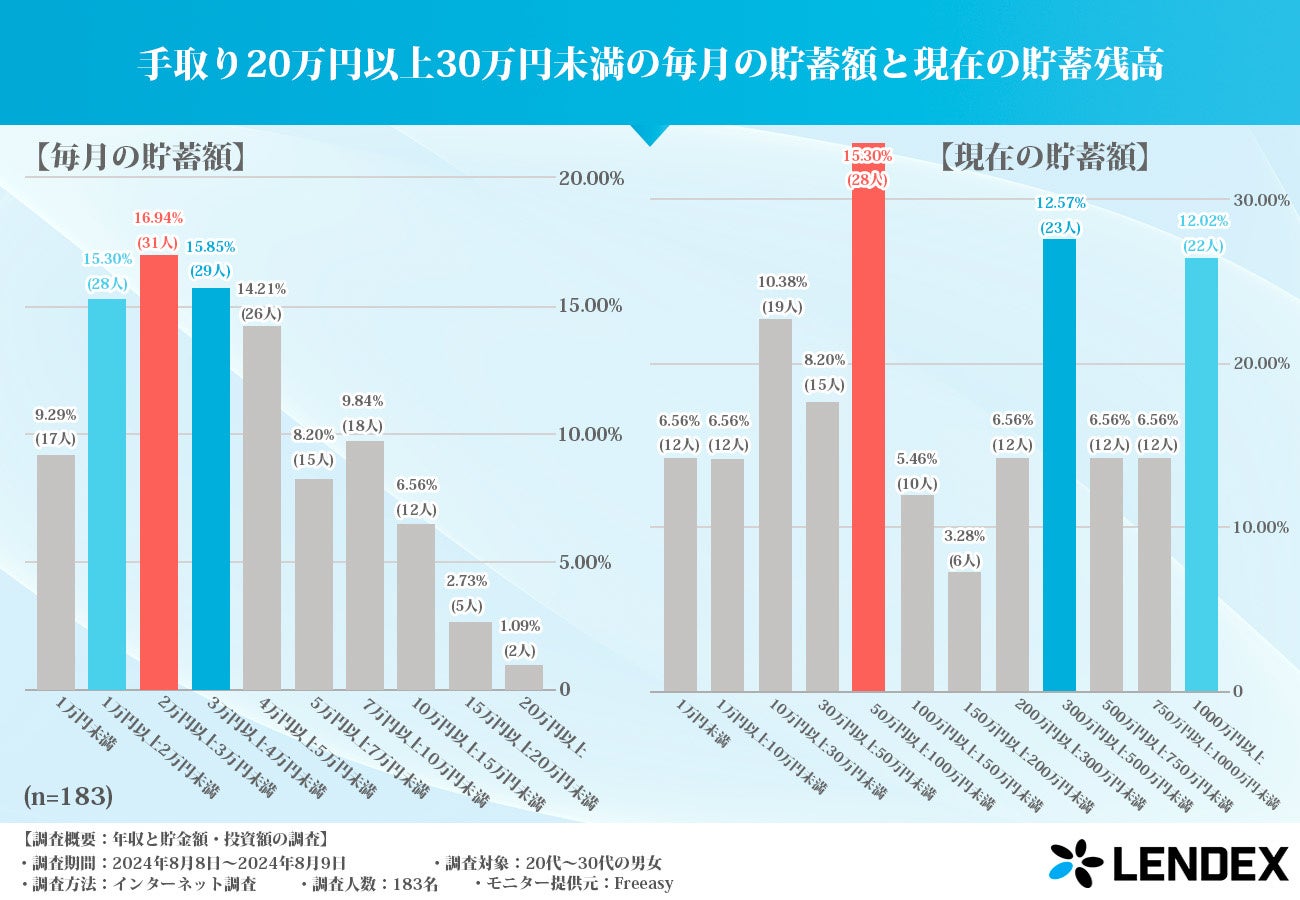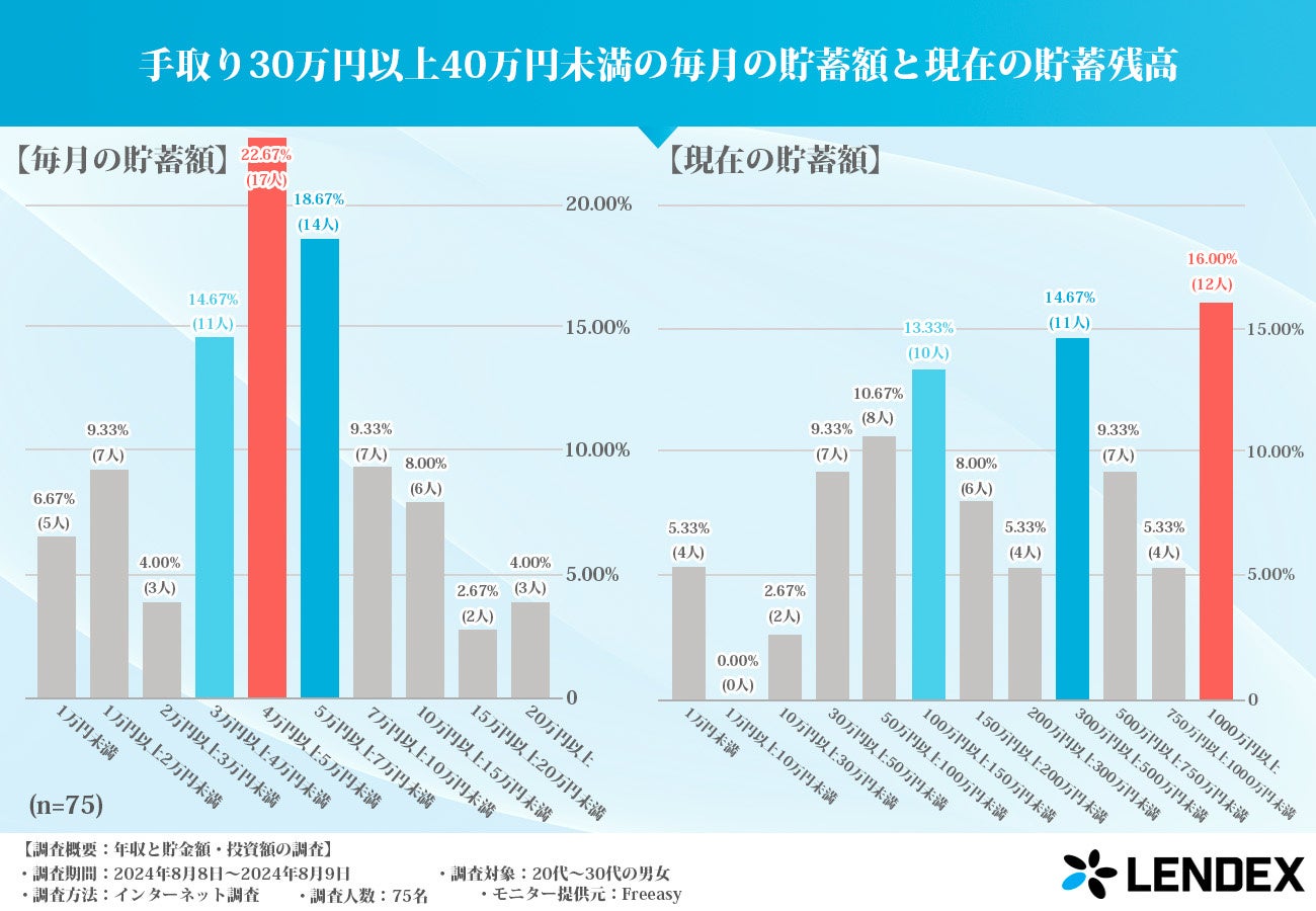 そこで今回、融資型クラウドファンディングサービスを提供する株式会社LENDEX(https://lendex.jp)は、20代から30代の男女を対象に、「毎月の貯金額と現在の貯蓄額」に関する調査を行いました。