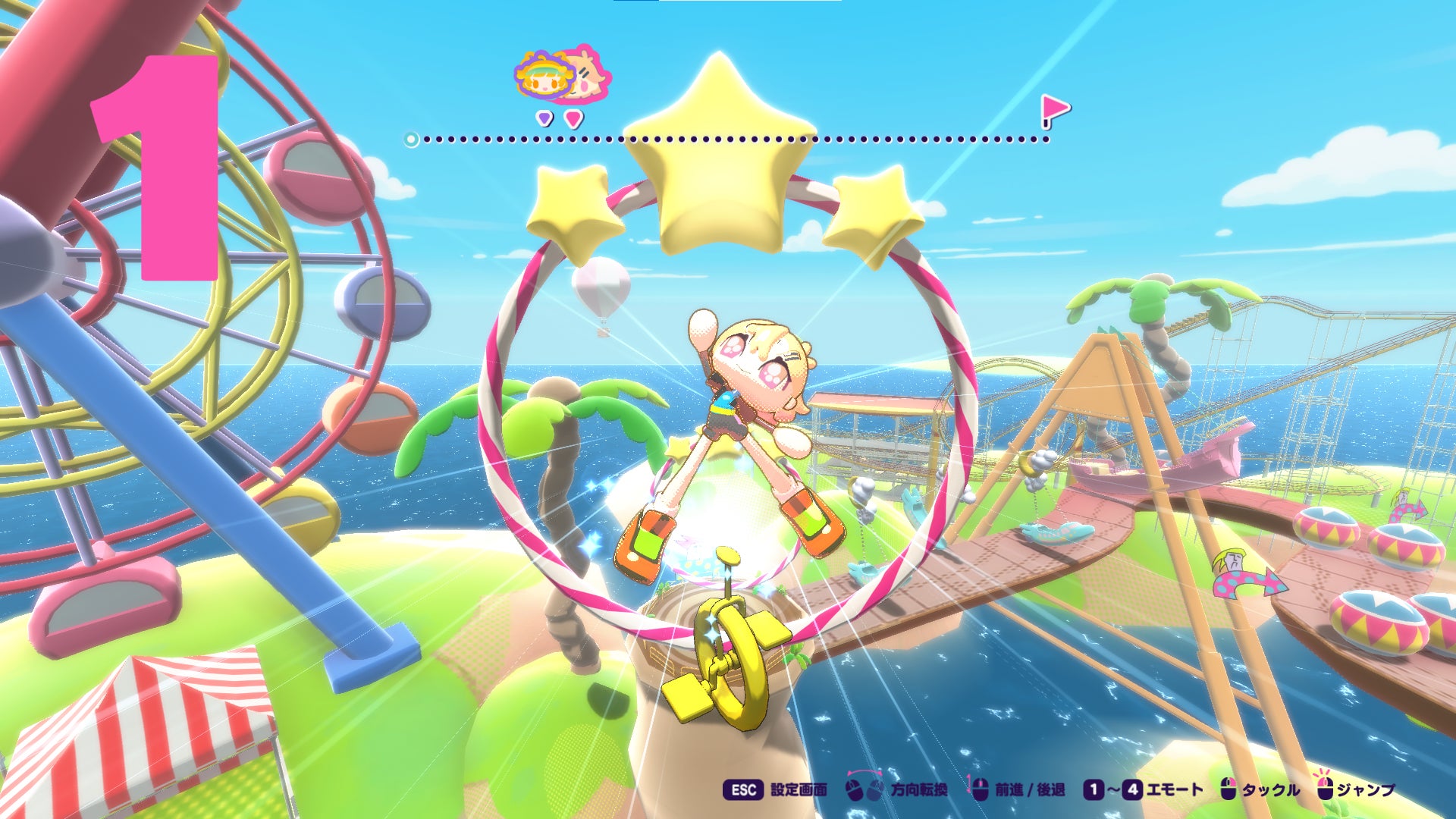 コースは危険あふれる仕掛けがたくさん!ギミックを乗り越えつつ、タックルで相手を蹴落とそう!