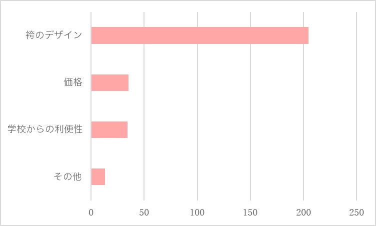 袴選びで重視する要素: 「デザイン」が圧倒的に重視されており、205名が「デザインが決め手」と回答しました。「価格」(35名)や「学校からの利便性」(34名)も重要な要素として挙げられています。
