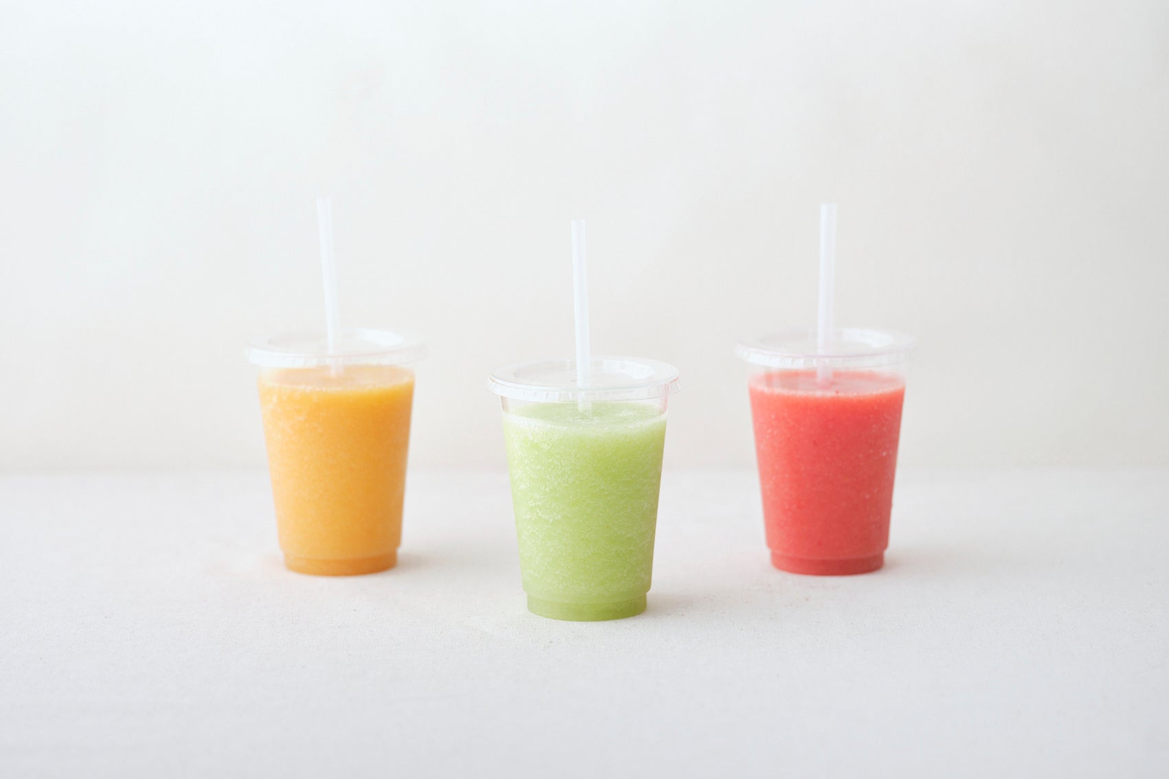 その日取り扱う、その時期に一番おすすめしたい品種を、ご注文を受けてからその場でジュースにします。作り立ての最もおいしい瞬間を楽しんでいただけるドリンクです。およそ3品種程度ご用意しており、お好きな品種からお選びいただけ、取り扱う品種はその時期によって変わります。
