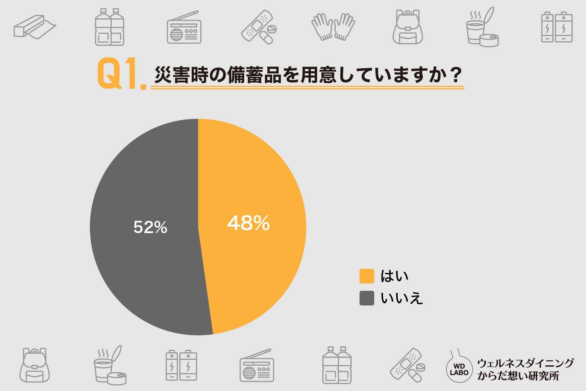 【ウェルネスダイニング】約半数が「防災備蓄を用意していない」 食の備えに不安を感じる人が4割超