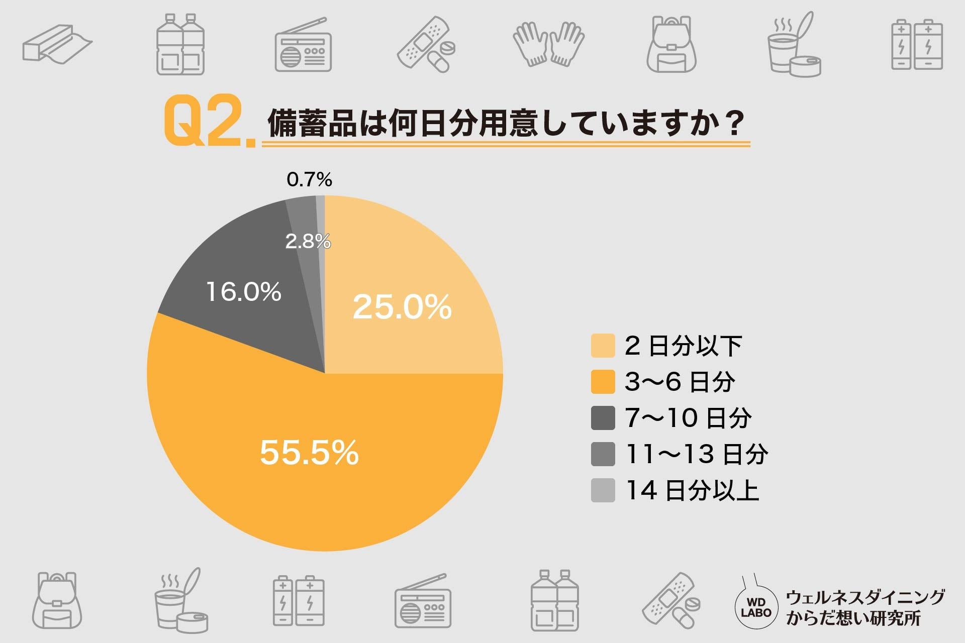 ✓ 備蓄している人の55.6%は「3〜6日分」のみ
