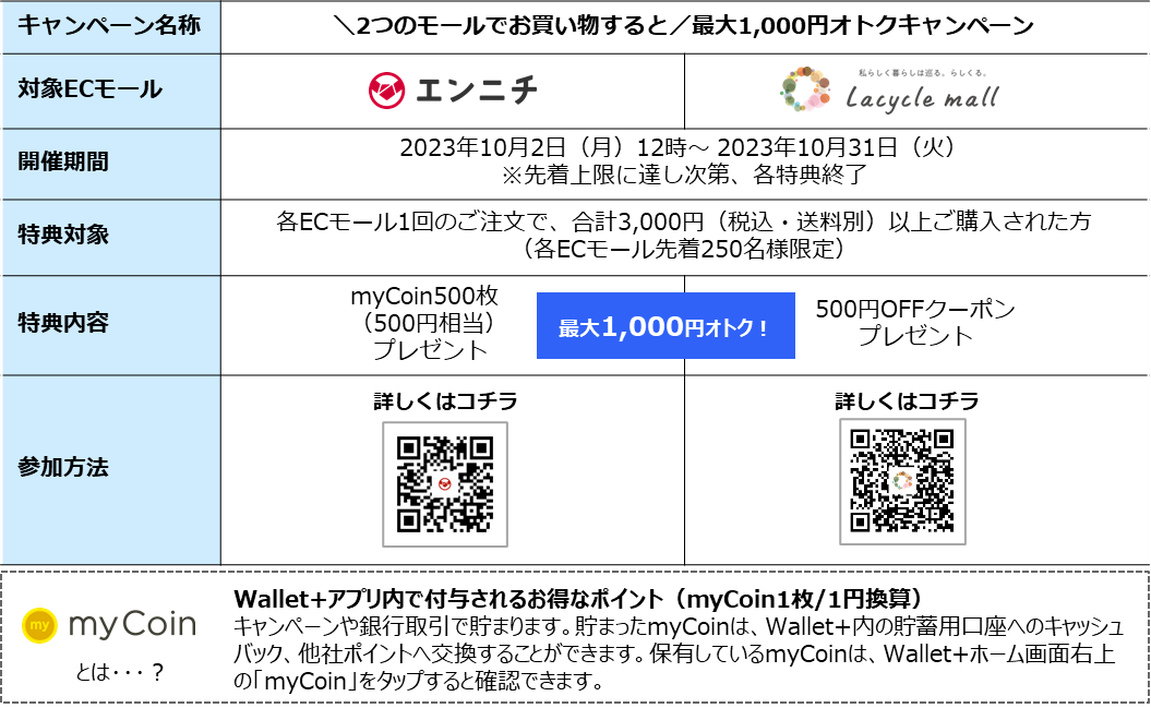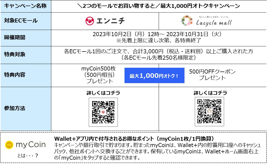 ~2つのECモールでお買い物をすると、最大1,000円お得!~
