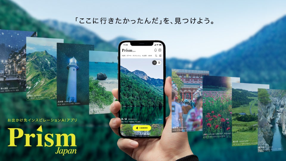 「Prism Japan」では、おでかけ先を探しているお客様に、アプリ内で画像を表示し、そのうち、お好みの画像を直感的に選んでもらうことで、AI=人工知能が好みや興味関心を即座に分析し、おすすめのおでかけスポットをお客様一人ひとりに合わせてご提案します。