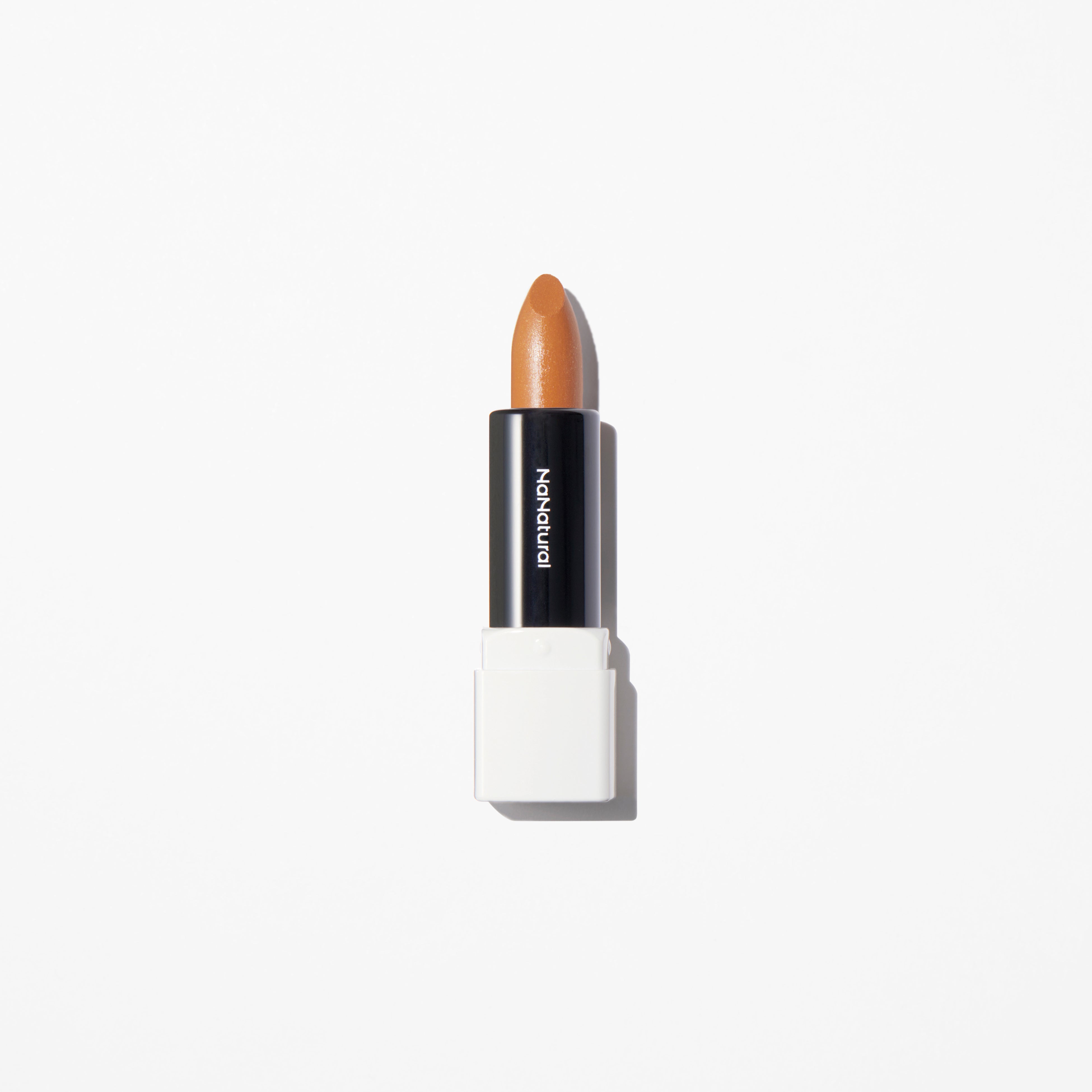 ゴールドのメタリックパールがさりげなく輝き、自然なツヤと血色を演出するダイダイ色。