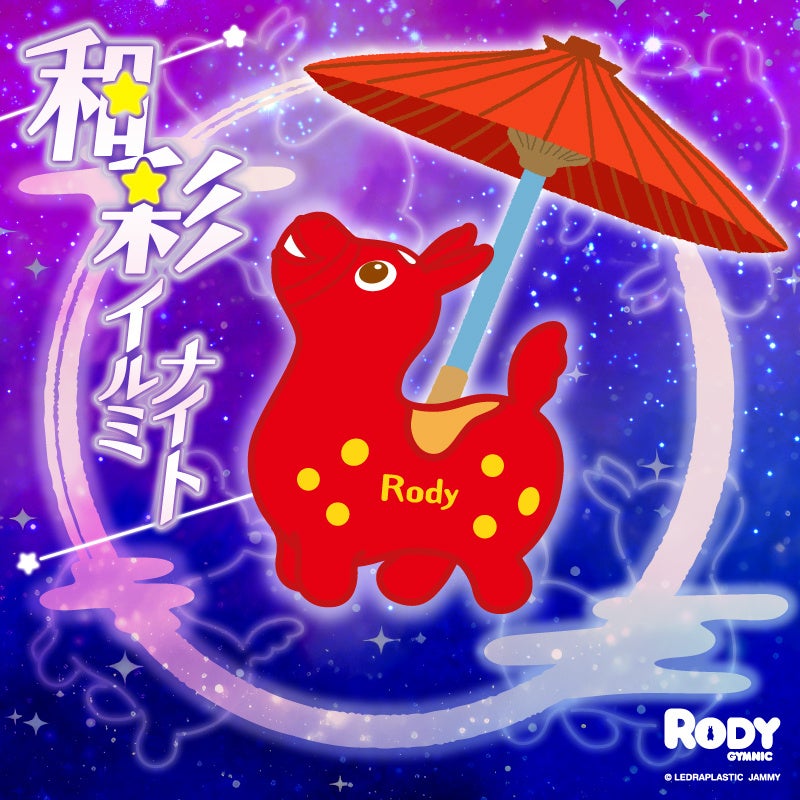 「和~nagomi~」がロディ40周年のコラボスペース(RODY40th和彩イルミナイト)になります。ロディと色鮮やかな和傘が灯す優しい光の演出(フォトスポット)に加えて、お子さんが遊べるすべり台やロディに乗って楽しめるスペースも設置します!