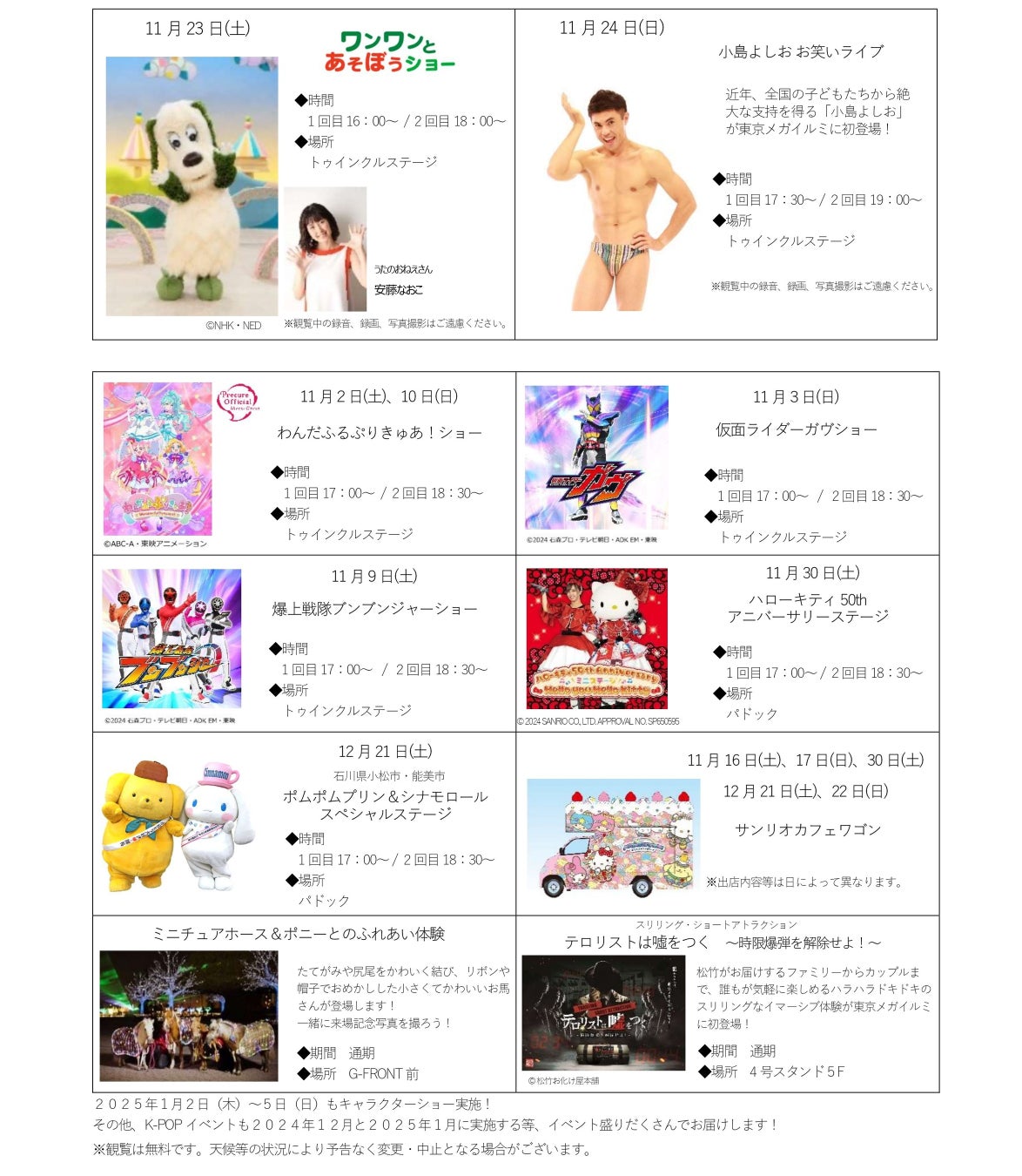 3回目のコラボレーションとなる今年は楽曲『KIRARI MAGIC SHOW』を使用した噴水ショーが登場!その他、場内ではコラボグッズやノベルティ付コラボ限定メニューを展開予定です。(※ノベルティ付コラボ限定メニューは、東京メガイルミ2024-2025シーズン開催期間中の大井競馬開催日にも販売予定)