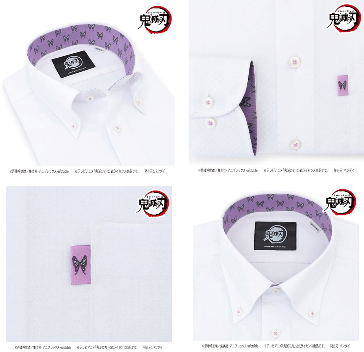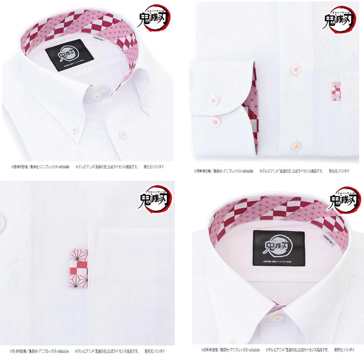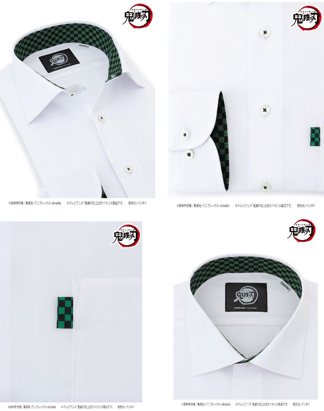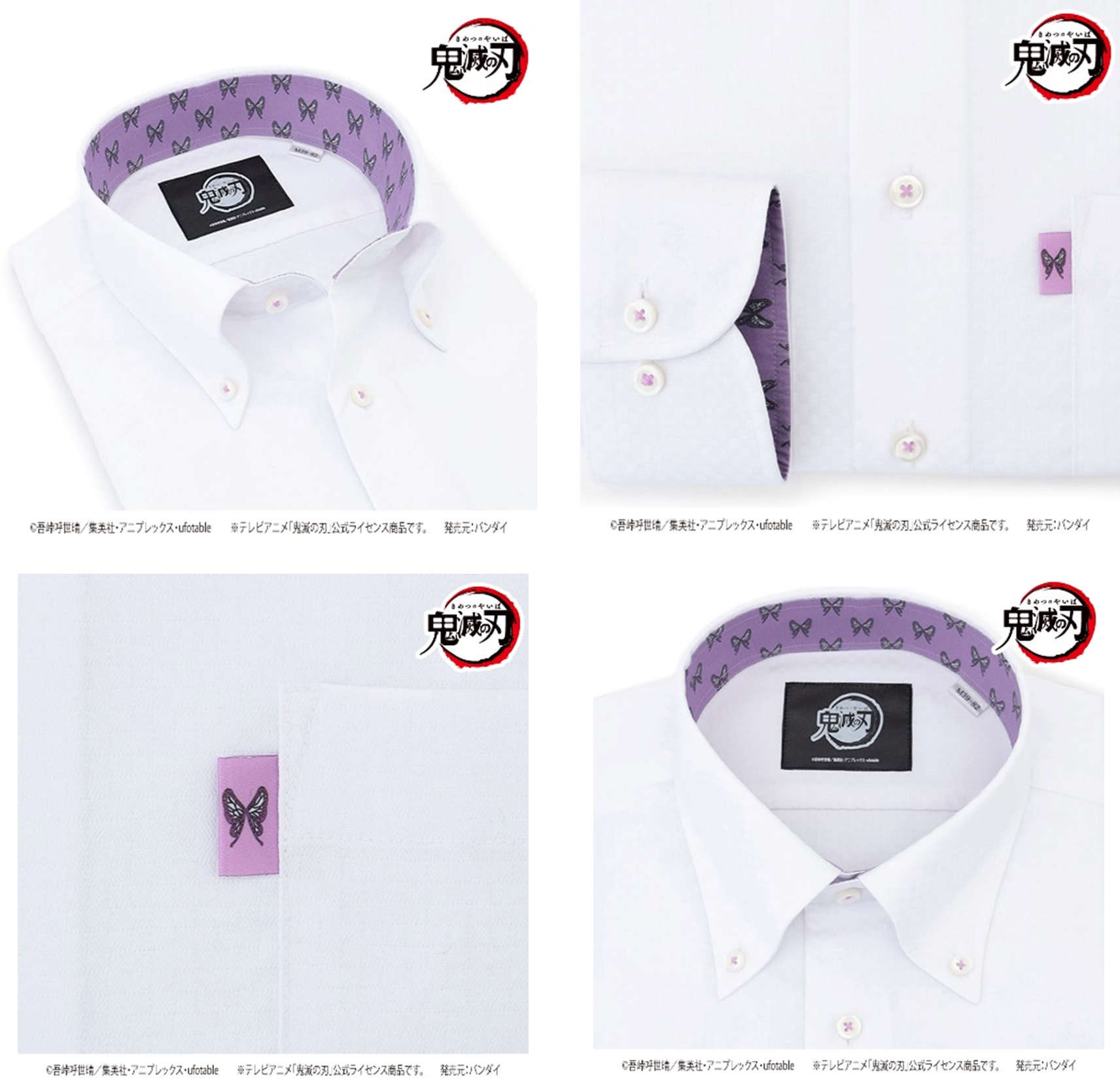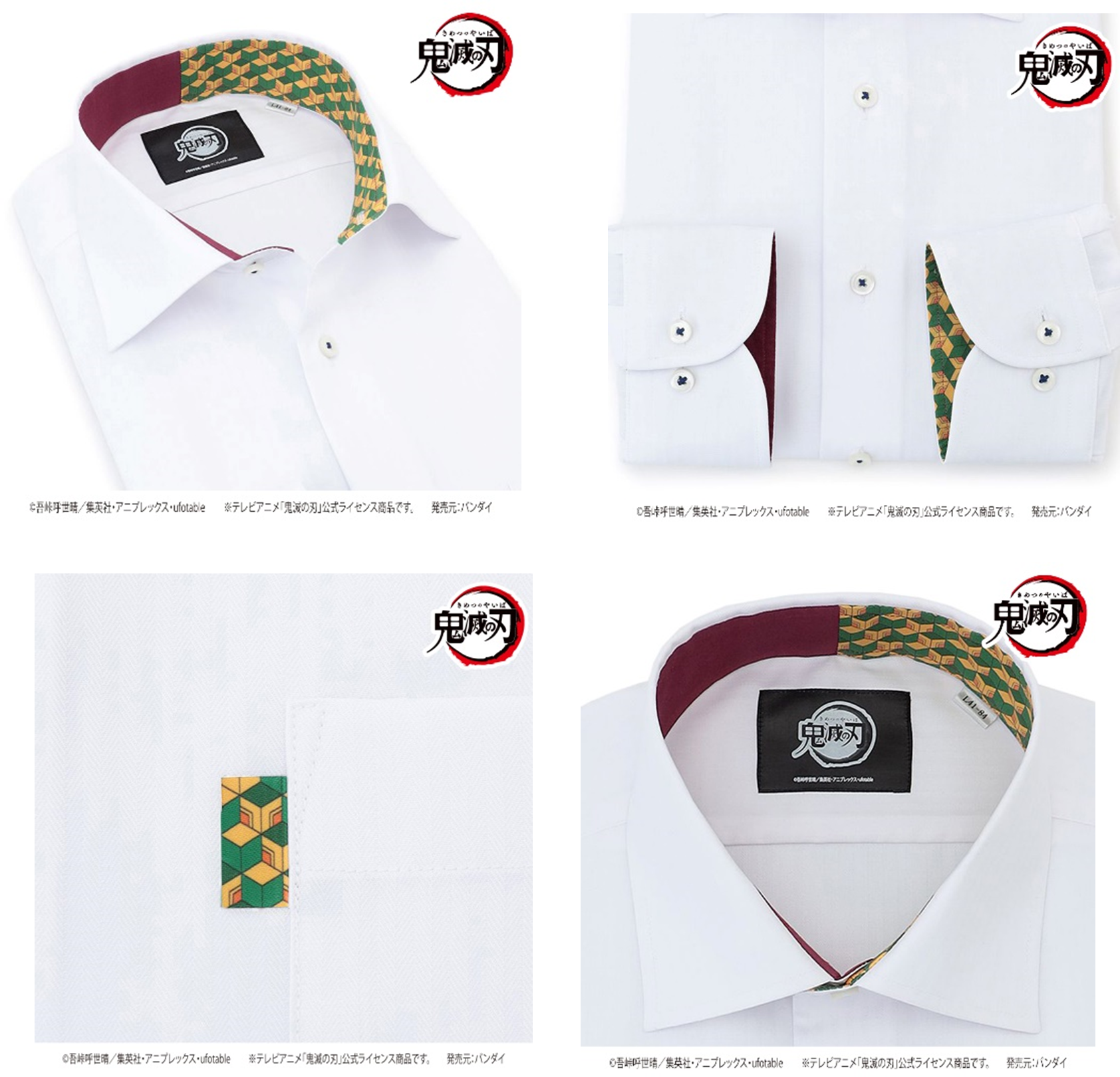 またシャツは、竈門炭治郎、竈門禰豆子、冨岡義勇、胡蝶しのぶの各モチーフを襟裏・袖裏・前立てに施した長袖シャツとなっております。