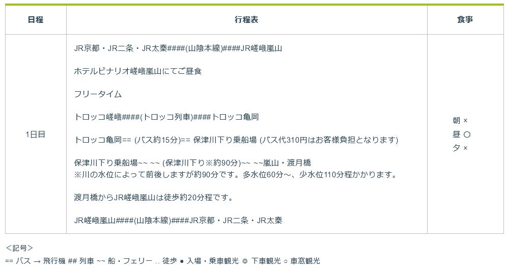 - 【京都府民限定】京都嵯峨野ランチ・トロッコ列車・保津川下り付 日帰りプラン (きょうと魅力再発見旅プロジェクト)