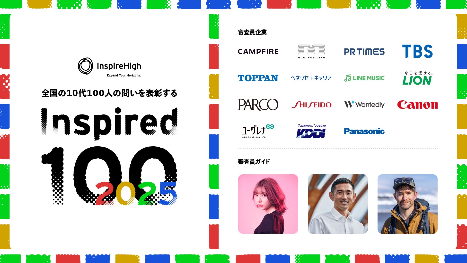 全国の10代100人の問いを表彰する「Inspired100」エントリー受付開始。ガイドや企業が審査員として参加