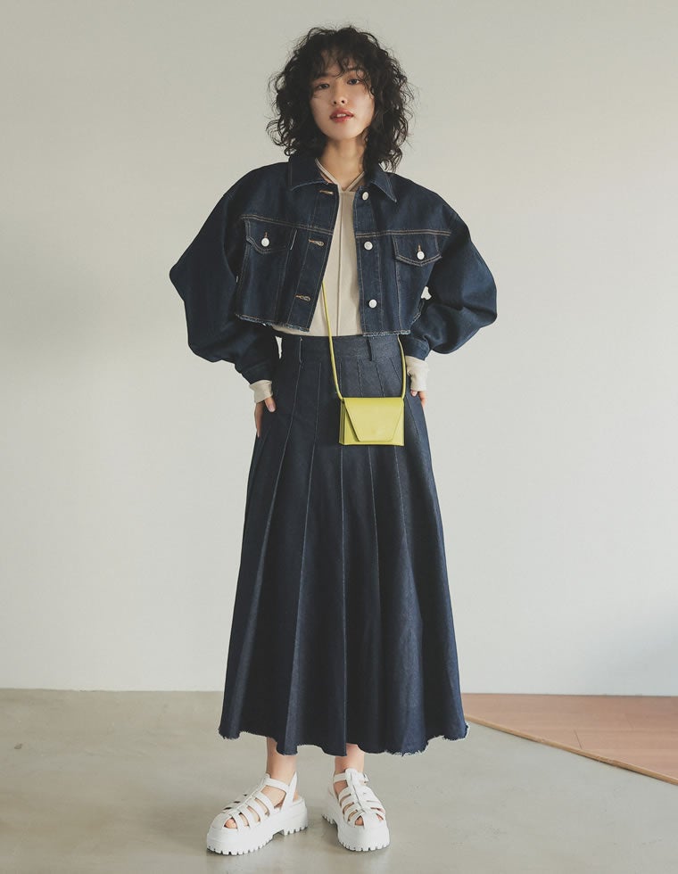 リサイクルデニムで仕立てたサステナブルなデニムジャケット×プリーツスカート