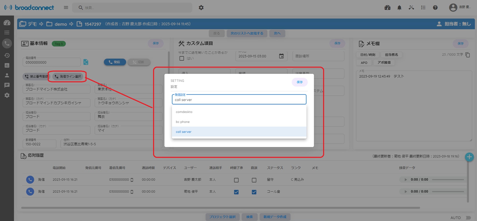 また、システムとスマートフォンが連動し、従来のIP電話(フリーダイヤル等)による発信だけでなく、パソコン上からスマートフォンを経由した携帯電話からの発信も可能。つながり率アップに期待できる他、通話料も「かけ放題」プランを利用できるので、定額化、且つ、コスト削減につながります。特に、発信量の多いコールセンターにとっては、かければかけるほどコストメリットが大きくなります。さらに、IP回線・携帯回線の切り替え作業も、複雑な設定などは不要でプルダウン選択のみとなっているため、誰でも簡単・シームレスに切り替えることが出来ます。