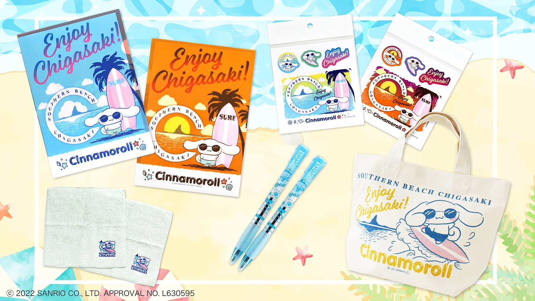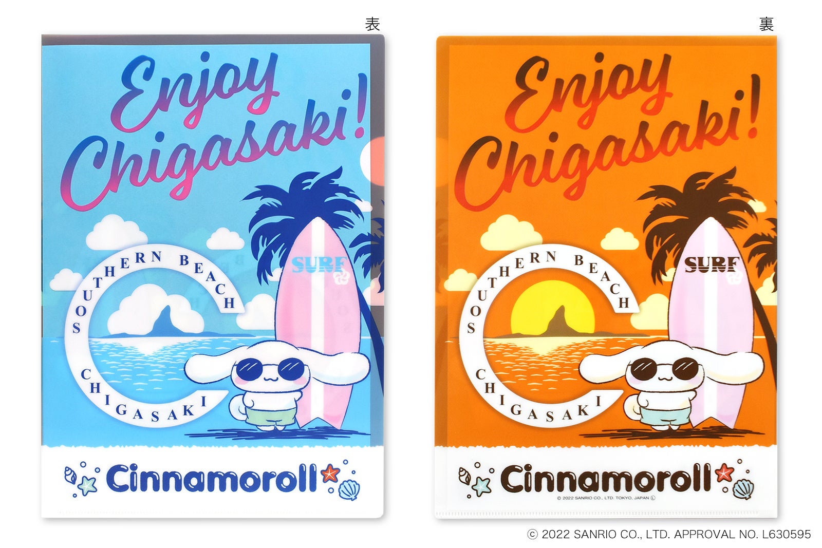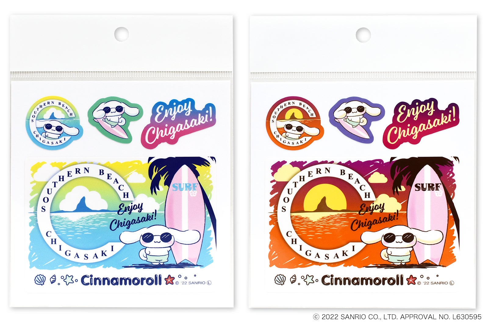 コラボデザインは、シナモロールが茅ヶ崎でサングラスをかけて遊んでいる様子の2種類です。(2カラー)