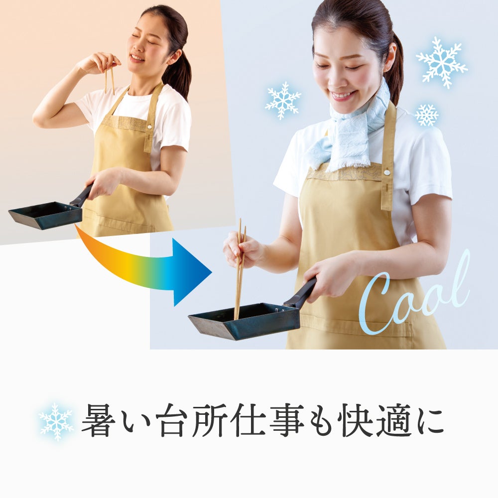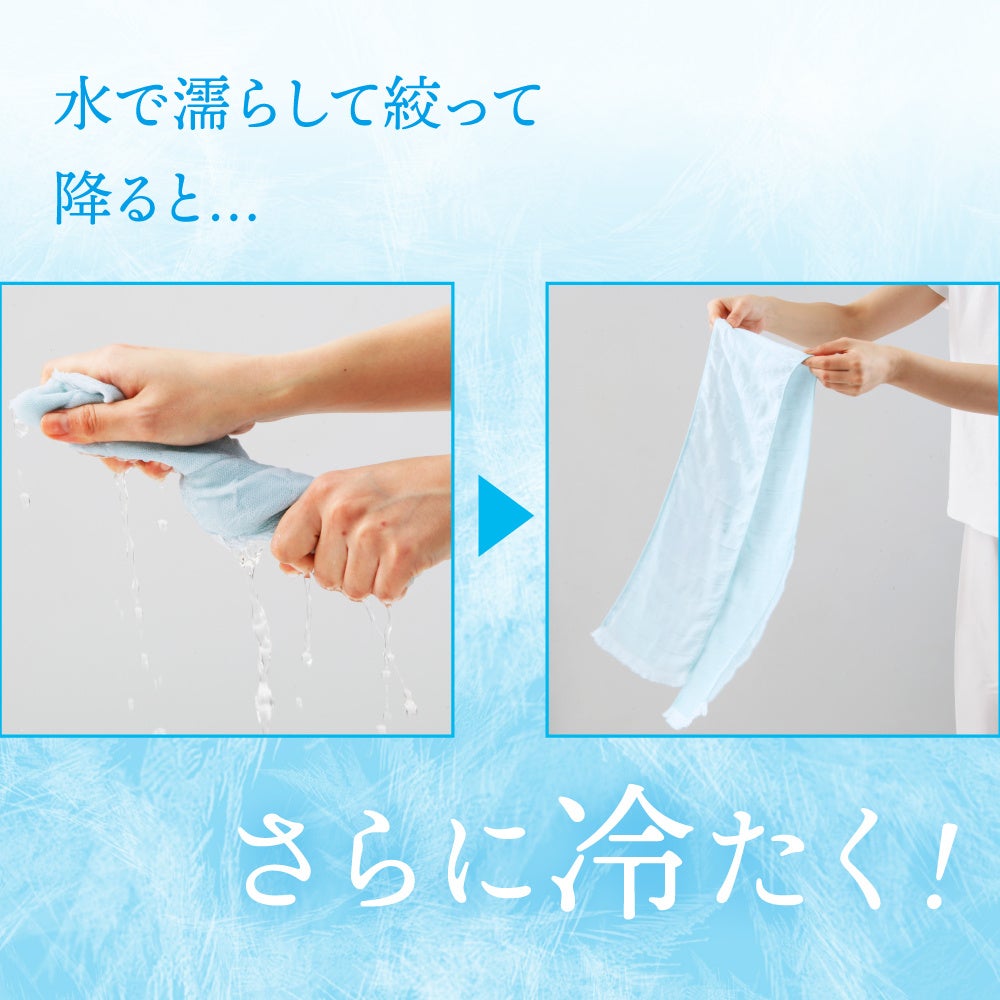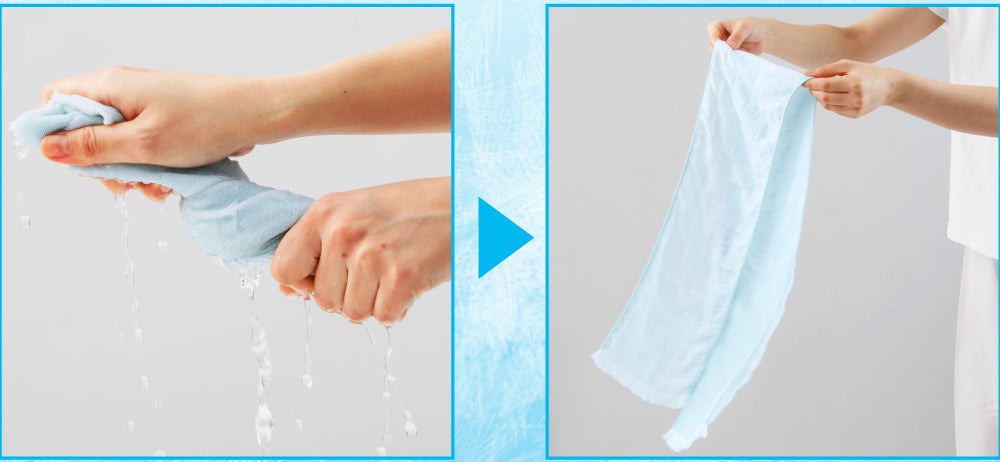 水で濡らして絞って振るとさらに冷たくなる。血管が集まる首を冷やして快適に熱中症対策を。 *比較対象:綿、製造元調べ