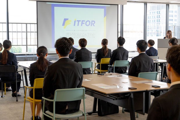 株式会社アイティフォー(本社:東京都千代田区、代表取締役社長:佐藤 恒徳)は、2024年10月1日、東京本社にて2025年度入社予定の内定者40名を対象とした内定式を開催しました。今回の内定式では、同日に職場体験に来社していた千代田区内の中学校の生徒3名に準備・運営サポートをしていただきました。