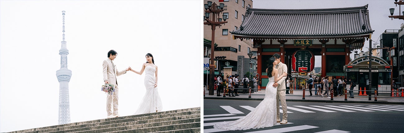 スタジオAQUA浅草店で人気の東京スカイツリーや雷門前での撮影を追加することもできるので、浅草ならではのロケーション撮影と併せてお楽しみいただけます。