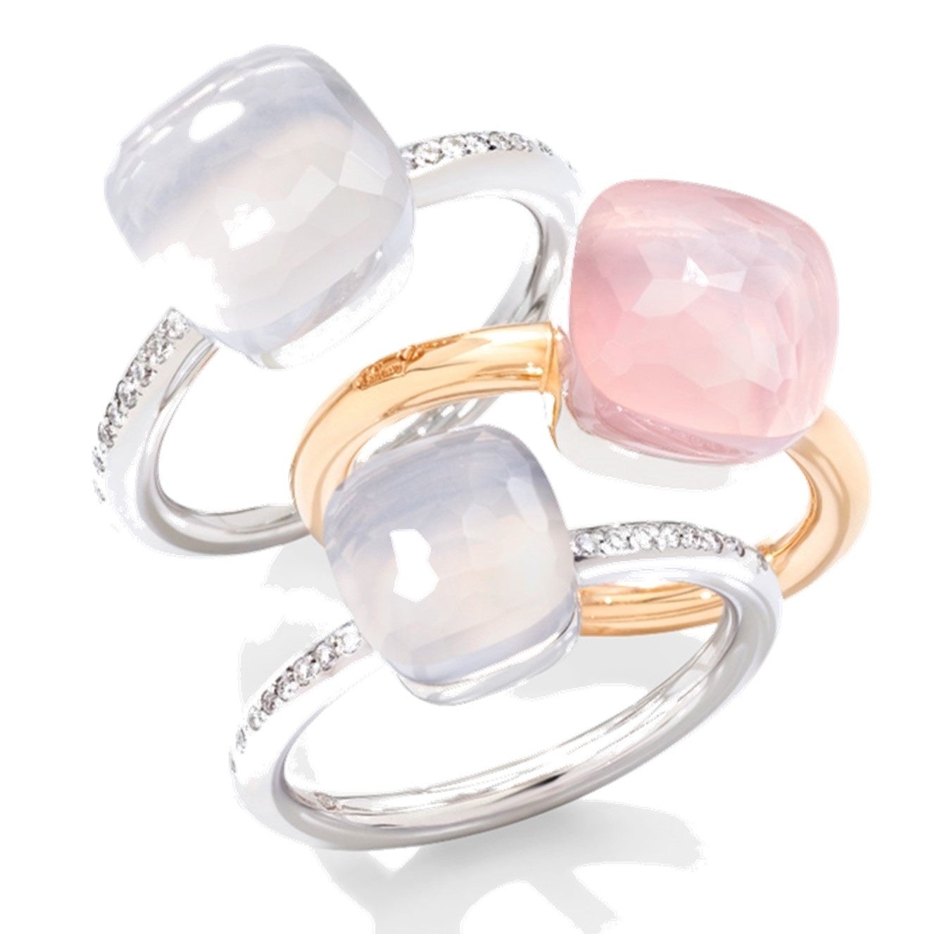 この春、ポメラートはアイコニックな「ヌード」にオールホワイトなルックの新作ミルキークォーツを発表します。淡いニュアンスの「ヌード」ミルキークォーツは、母の日にぴったりの柔らかな輝きを放ちます。ニュートラルなトーンは1つでも魅力的ですが、他のリングとの重ね着けやコーディネートのスタイリッシュなアクセントにも早変わりします。