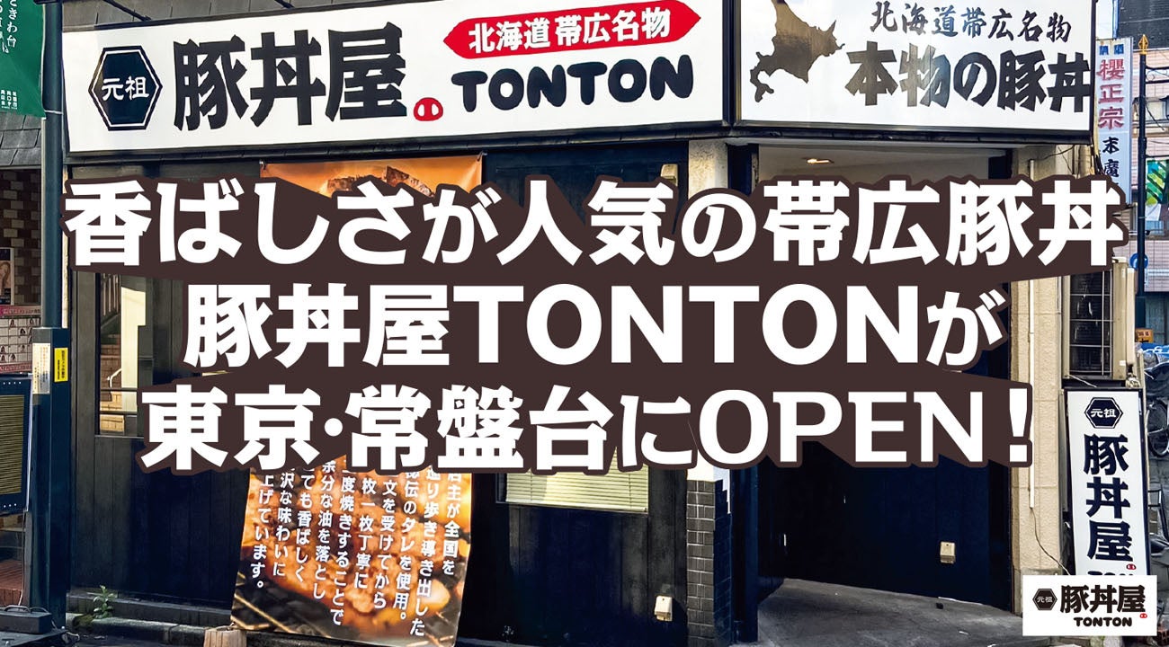 ワンズトライン株式会社(本社:大阪市北区芝田2丁目3番16号、代表取締役:山内仁)は、東京板橋区・常盤台に「元祖豚丼屋TONTON 常盤台店」(住所:東京都板橋区南常盤台1-29-11、TEL:03-6909-3290)を、'23年1月24日(火)オープンいたします。