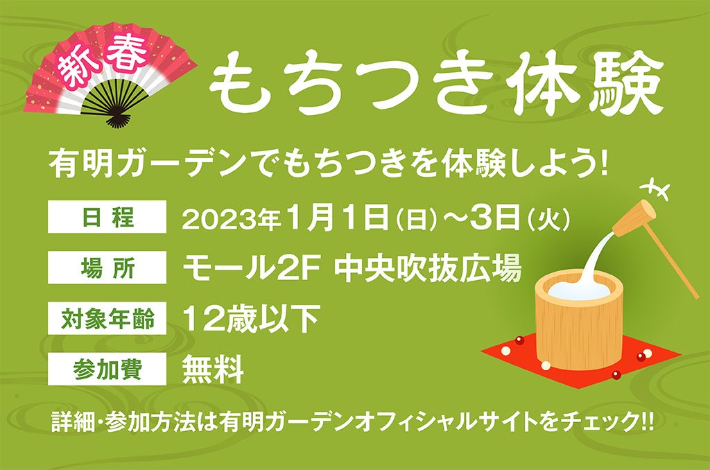 住友不動産商業マネジメント株式会社(本社:東京都新宿区 代表取締役社長:山本 直人)が、運営する複合商業施設「住友不動産 ショッピングシティ 有明ガーデン」(所在:東京都江東区)において実施する、お正月イベントについてお知らせいたします。
